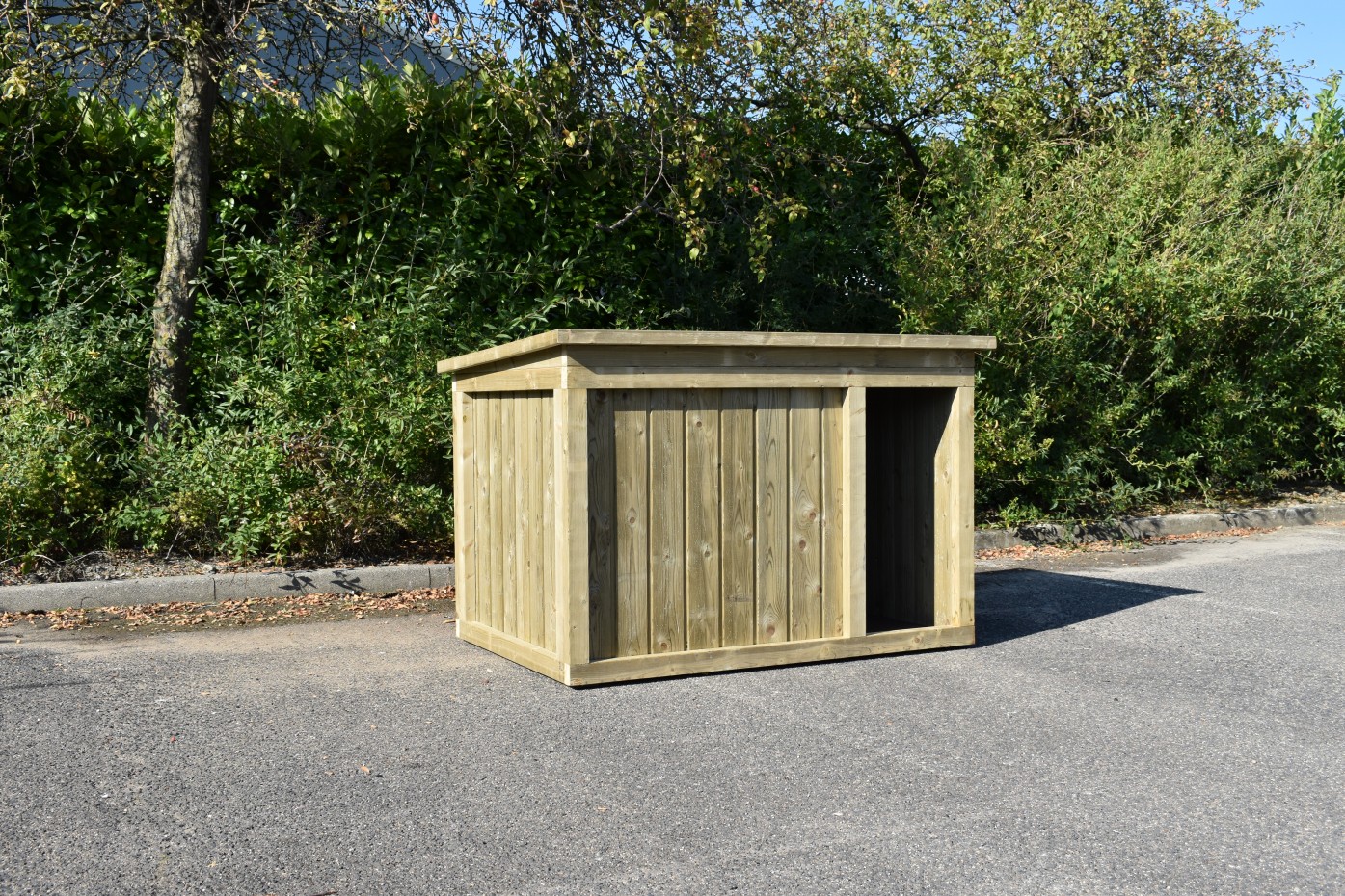 Buda dla psa Block wykonana jest z impregnowanego drewna sosnowego i wyposażona w izolację. Jest bardzo solidnie zbudowany i dlatego dobrze nadaje się dla dużych psów, takich jak Boerboel, Great Dane, Newfoundlander, Saint Bernard, Bernese Mountain Dog, Mastif Tybetański. Ściany, podłoga i dach są wyposażone w materiał izolacyjny o grubości 3 cm.