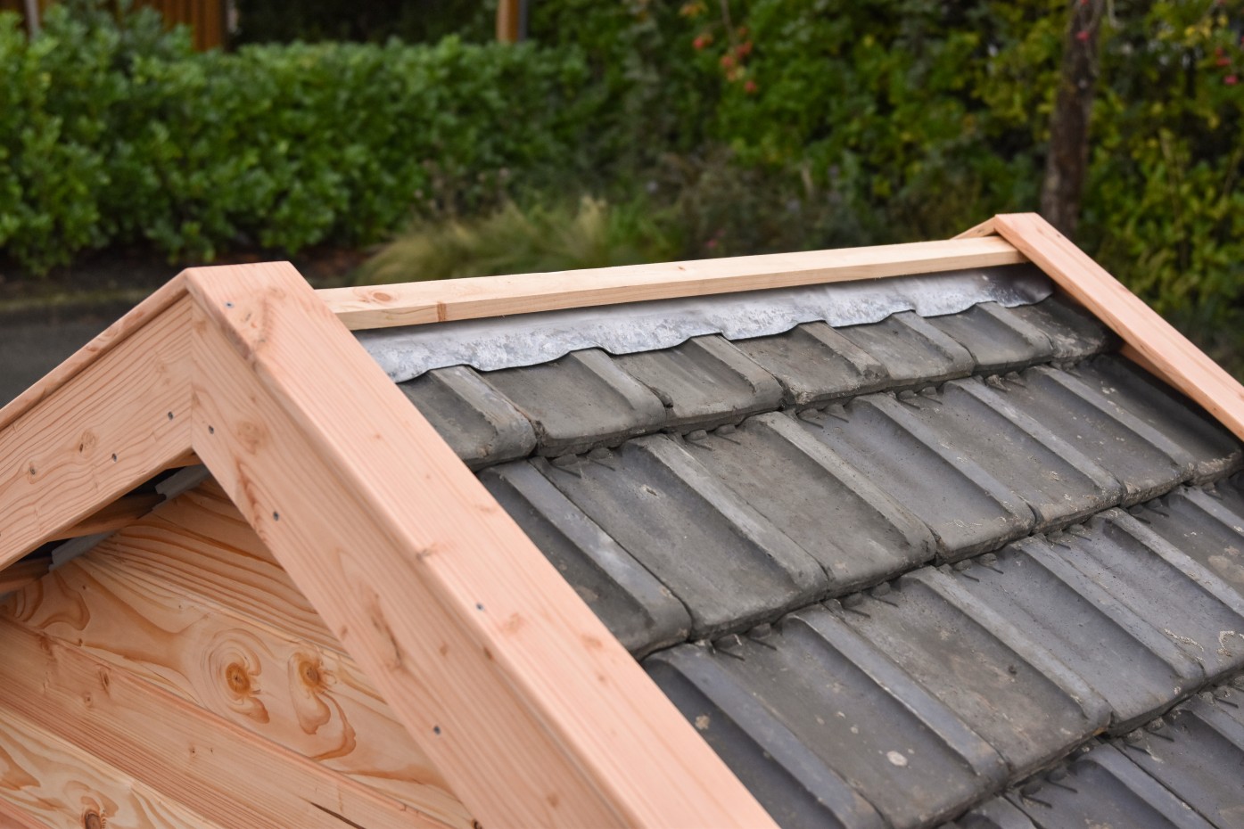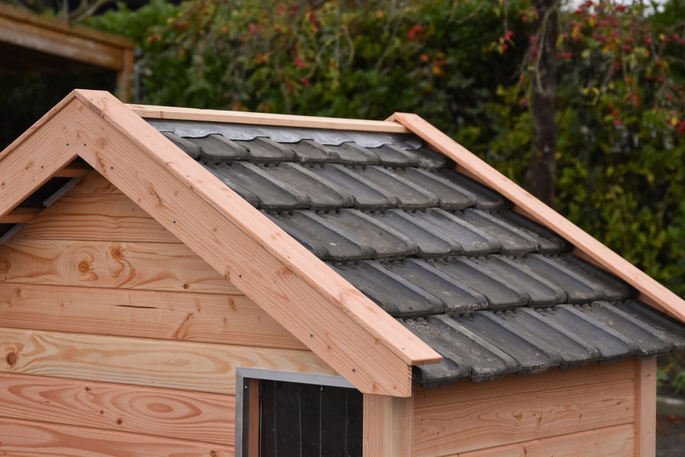 - Ta buda wyposażona jest w zużyte ceramiczne dachówki.