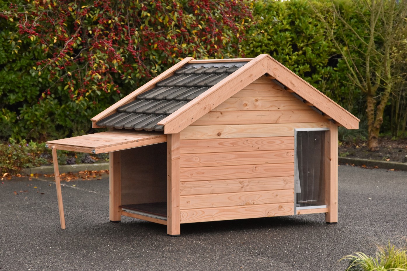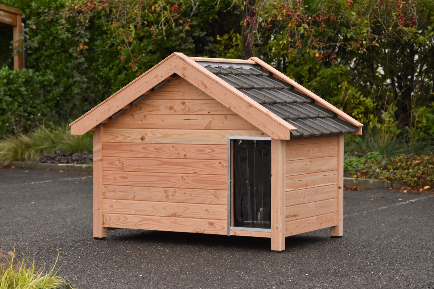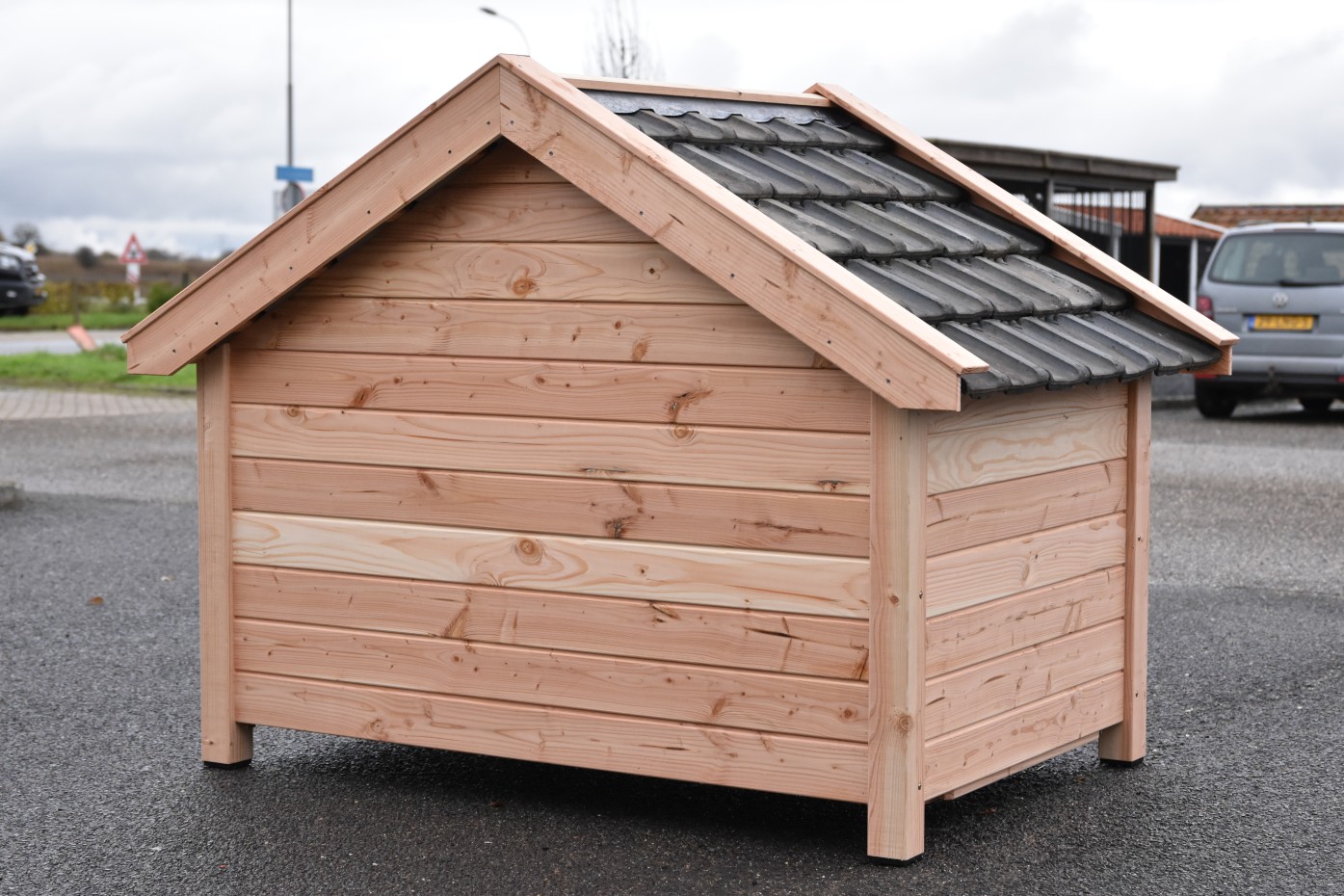 Buda Turbo Douglas Iso to bardzo duża, ocieplona buda w czerni z drewnem daglezji i ścianami o grubości 7 cm dla maksymalnej ochrony. Wykonywana jest ręcznie, ma stylowy i solidny wygląd. Obracana przegroda przeciwwiatrowa oraz całkowicie odchylana ściana boczna ułatwiają czyszczenie. W upalne dni otwarta strona zapewnia lepszą wentylację. Odpowiednia dla dużych ras, takich jak Berneńczyk, Dog Niemiecki czy Boerboel.