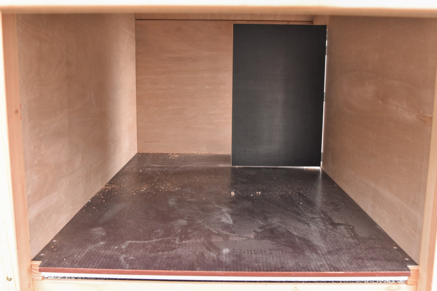 - Wnętrze jest wyłożone twardym drewnem sklejkowym.