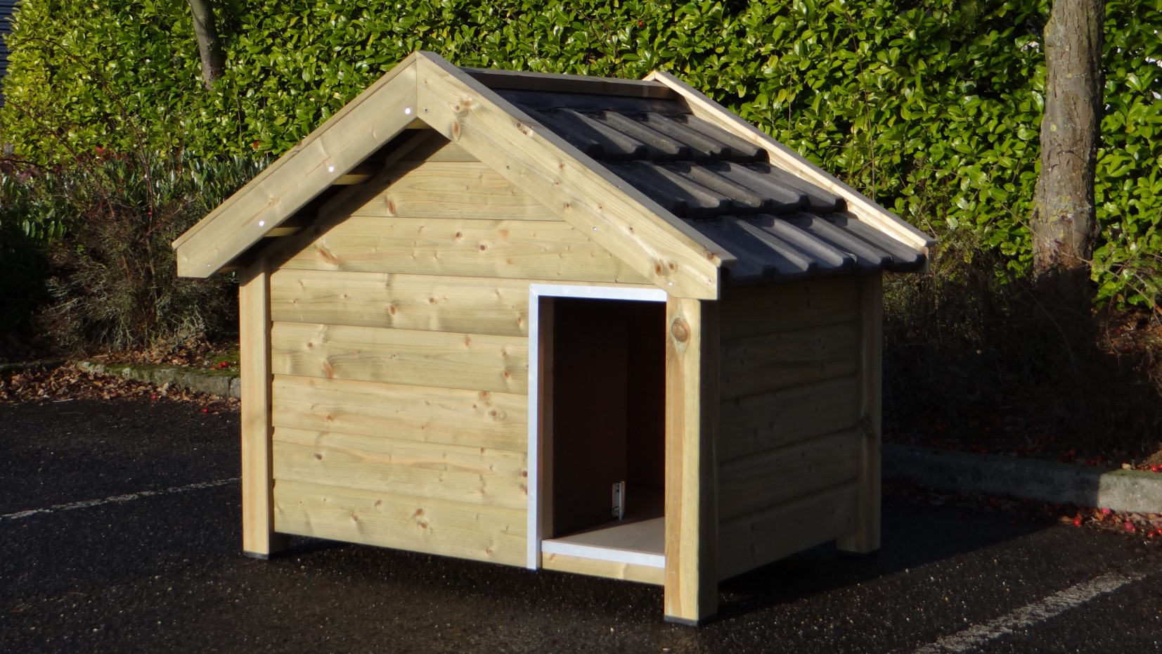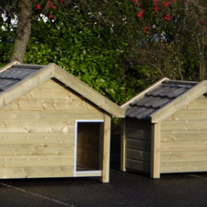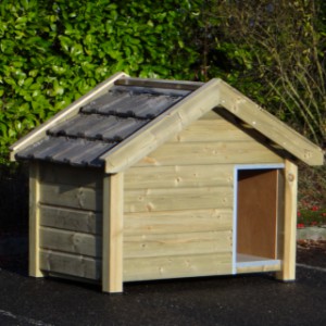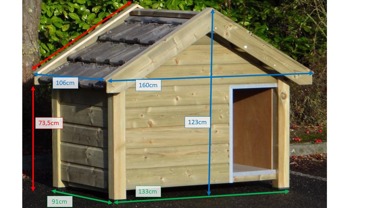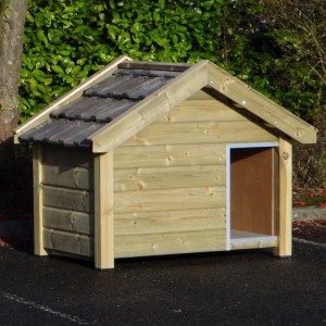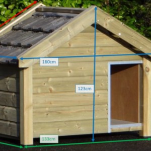 Ocieplona buda Reno to wysokiej jakości i estetyczna buda dla psa. Wykonana jest z impregnowanego drewna świerkowego, w połączeniu ze sklejką szalunkową (betonplex) oraz prawdziwymi dachówkami. Izolowane ściany mają aż 7 cm grubości. Zewnętrzne wymiary budy to ok. 160 × 106 × 123 cm (szer.×gł.×wys.). Najwyższa jakość!