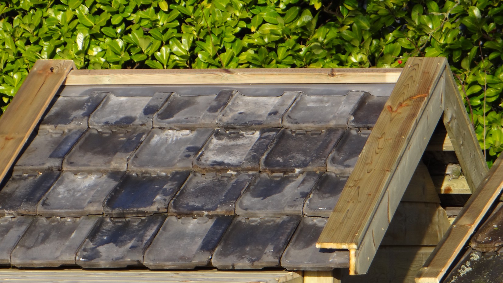- Ta buda wyposażona jest w zużyte ceramiczne dachówki.
