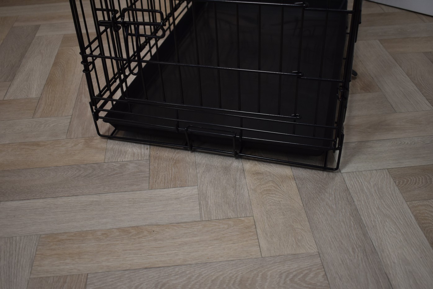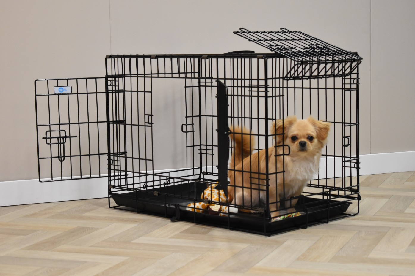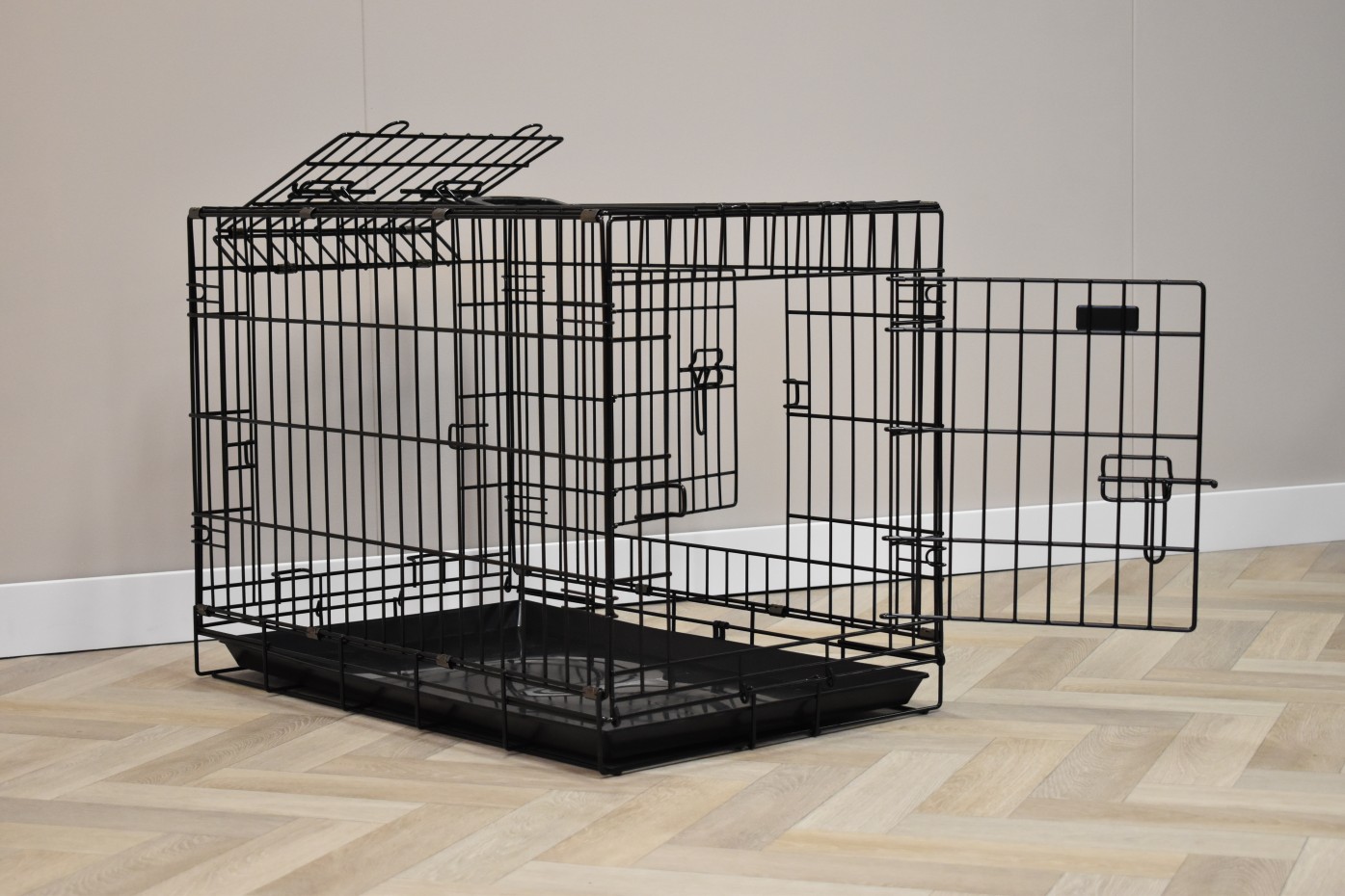 Solidna ławka dla psa o wymiarach 78x49cm. Nasza buda dla psa z solidnymi, grubymi, czarnymi prętami malowanymi proszkowo posiada 3 solidne drzwi z przesuwnym/składanym zamknięciem. Ta poręczna, składana buda dla psa wyposażona jest również w gumowe, antypoślizgowe nóżki. Buda dla psa posiada również wyjmowaną plastikową kuwetę. Ta klatka jest przeznaczona dla nieco mniejszych ras psów: Beagle, Mniejszy Schnauzer, Buldog francuski, Pomsky, Welsh Springer Spaniel i Whippet.