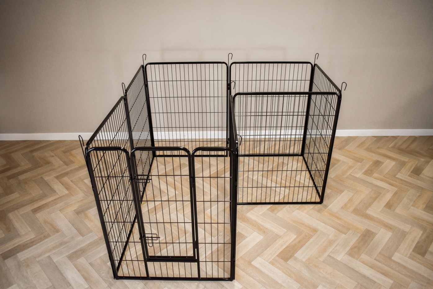 Wybieg dla szczeniąt wykonany z malowanej proszkowo stali o wysokości 100 cm. Wybieg dla szczeniąt Octa składa się z 8 paneli o wymiarach ok. 79 x 100 cm. Całkowity obwód wybiegu dla szczeniąt wynosi około 640 cm.