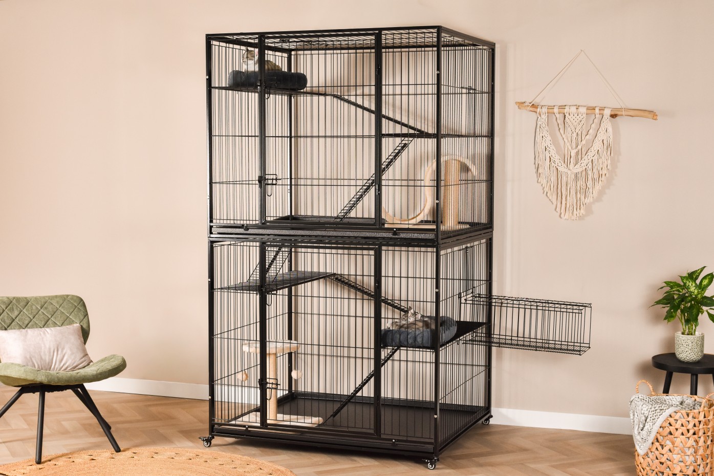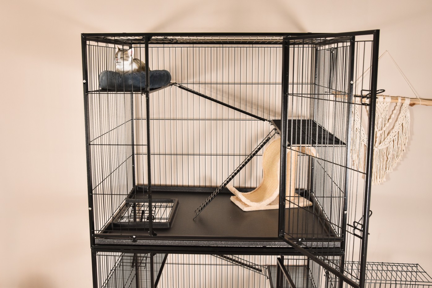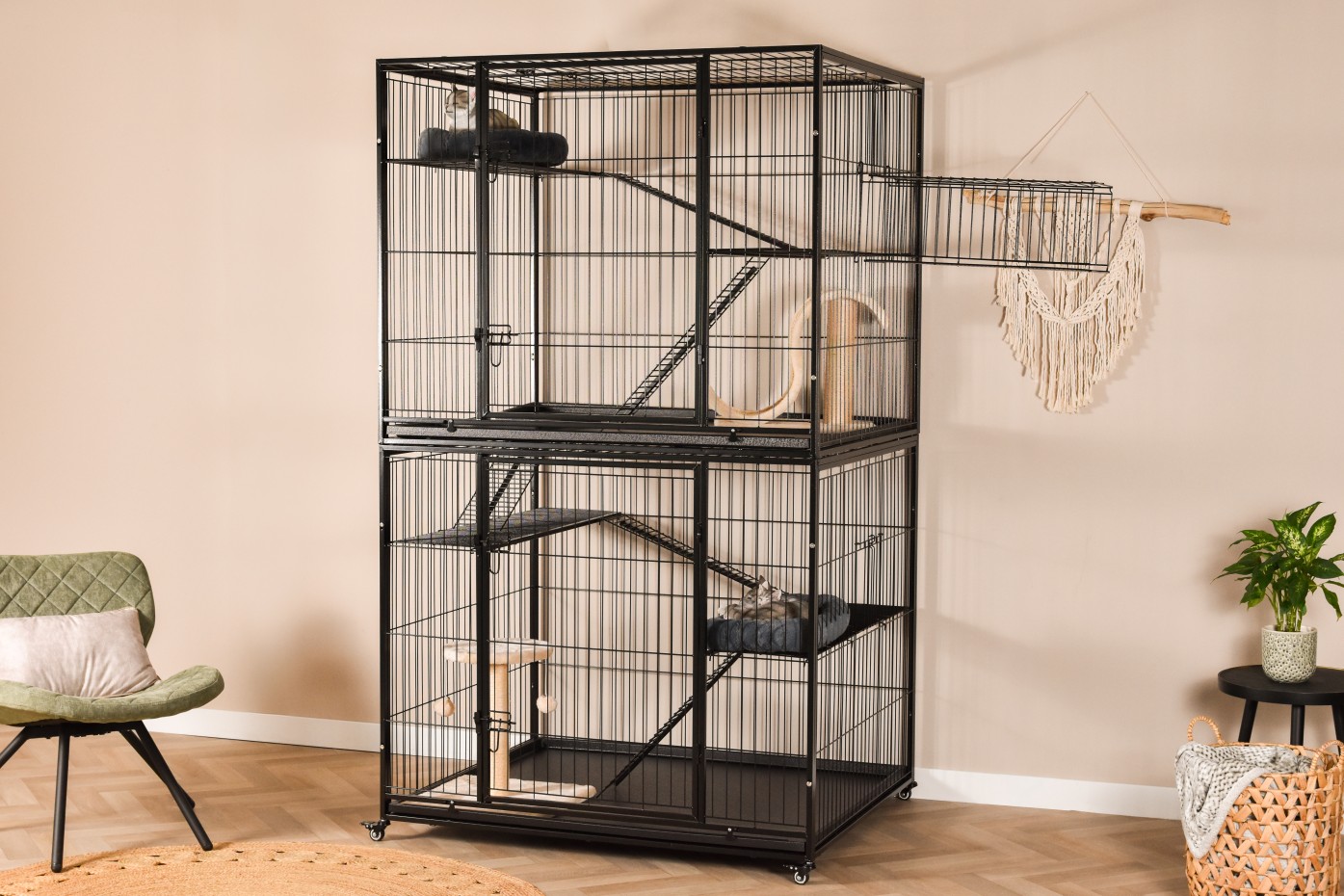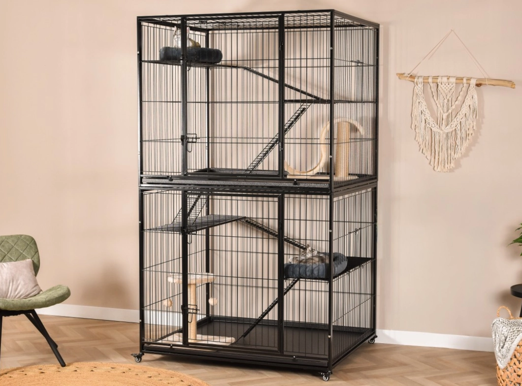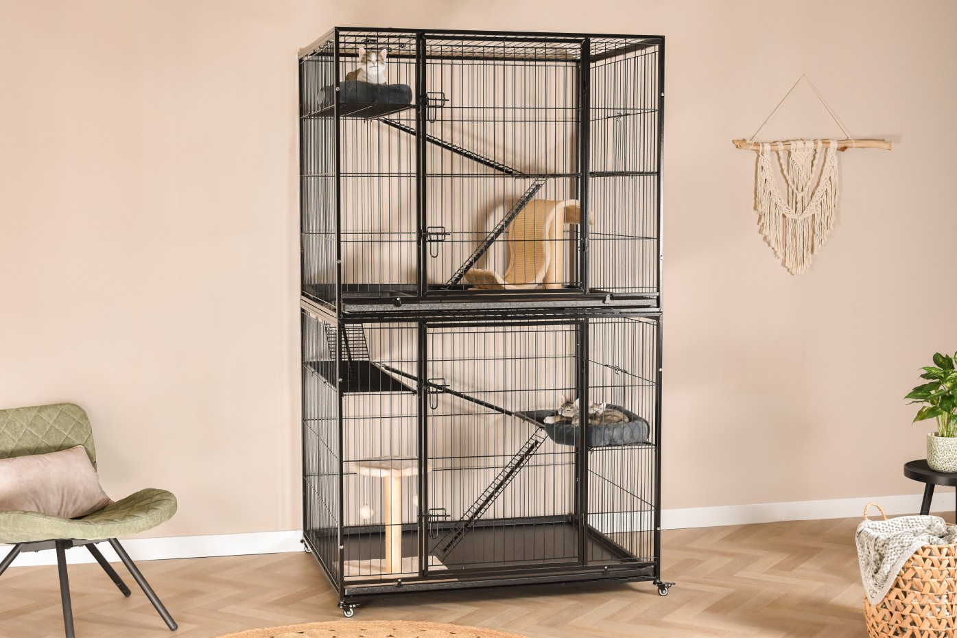 - Ta klatka dla kota jest wyposażona w 2 solidne drzwi z zamkami