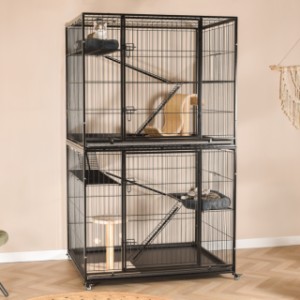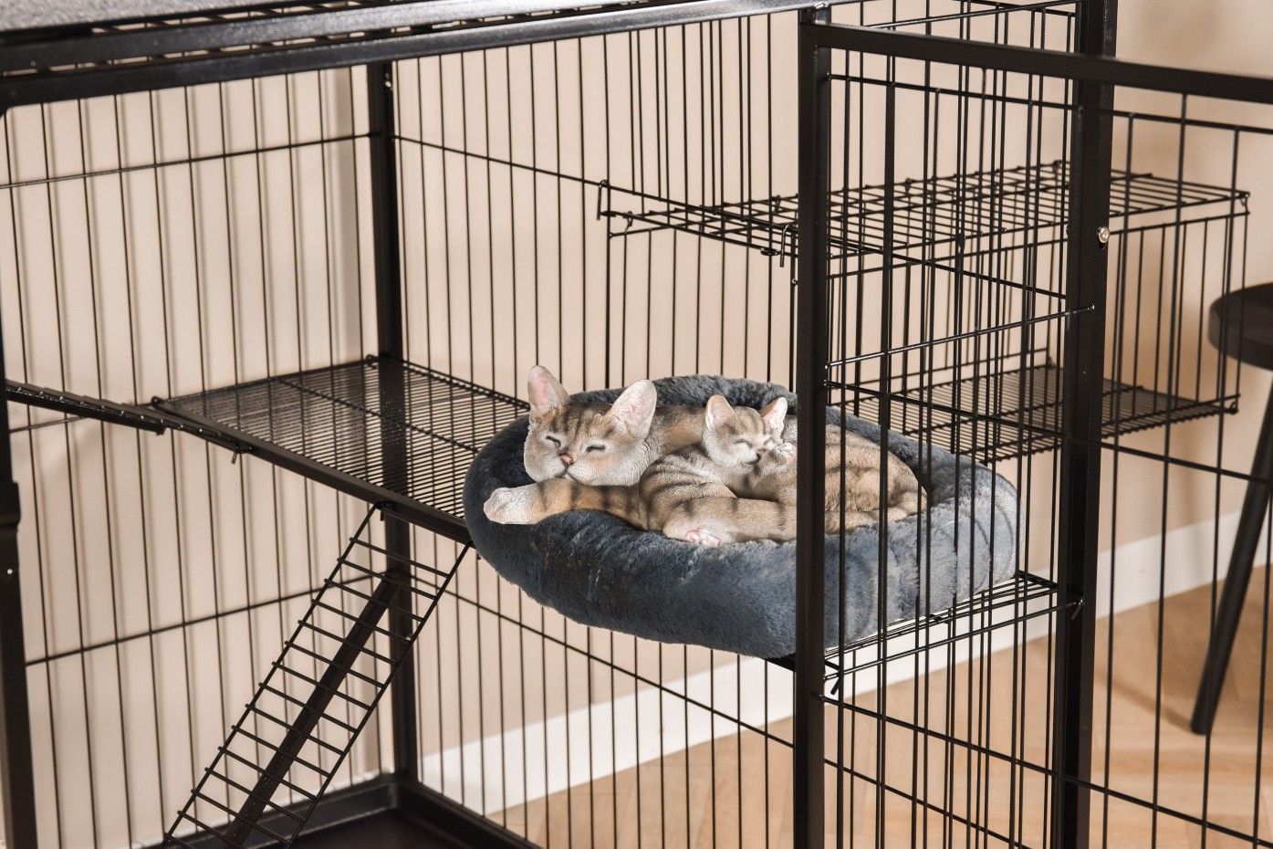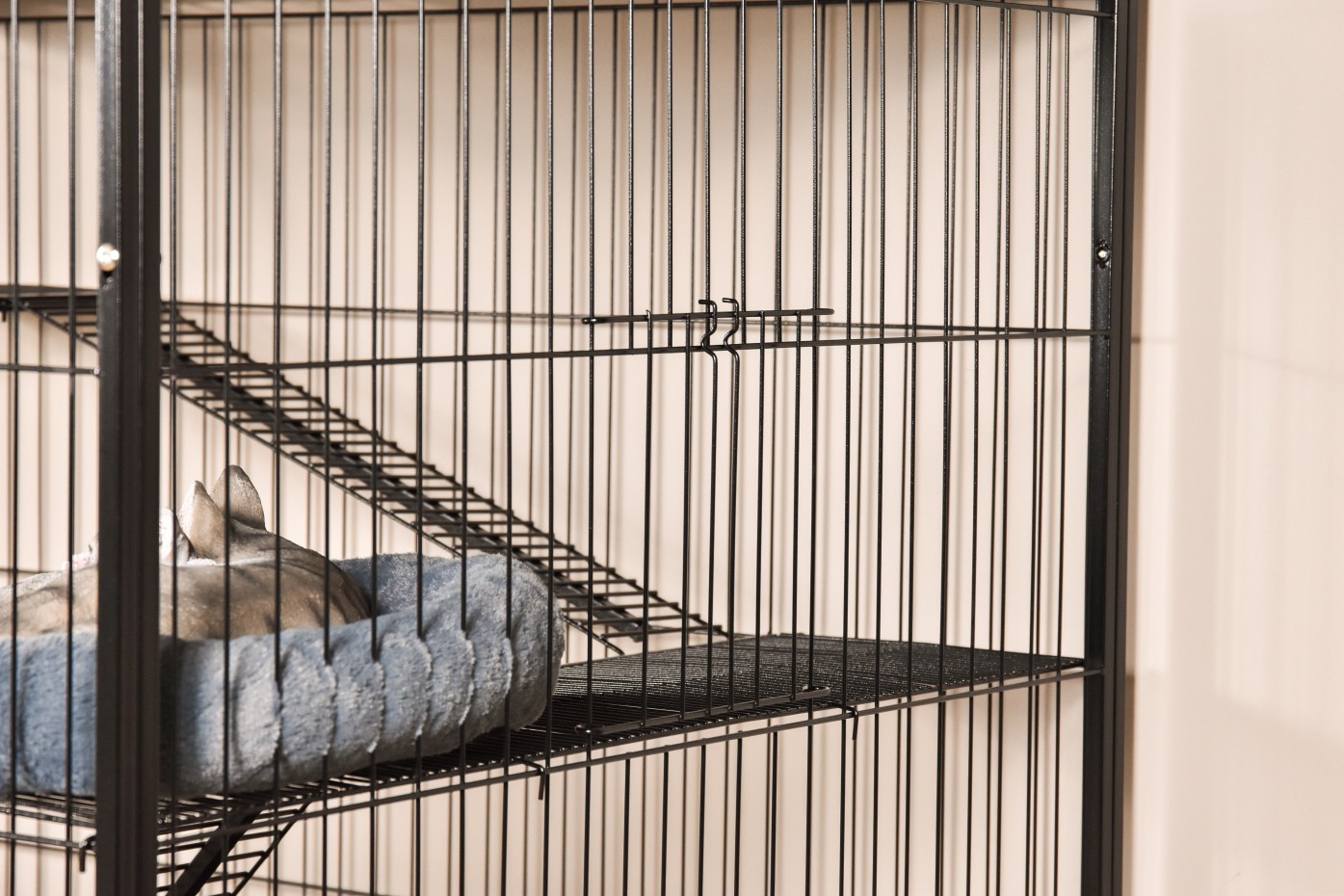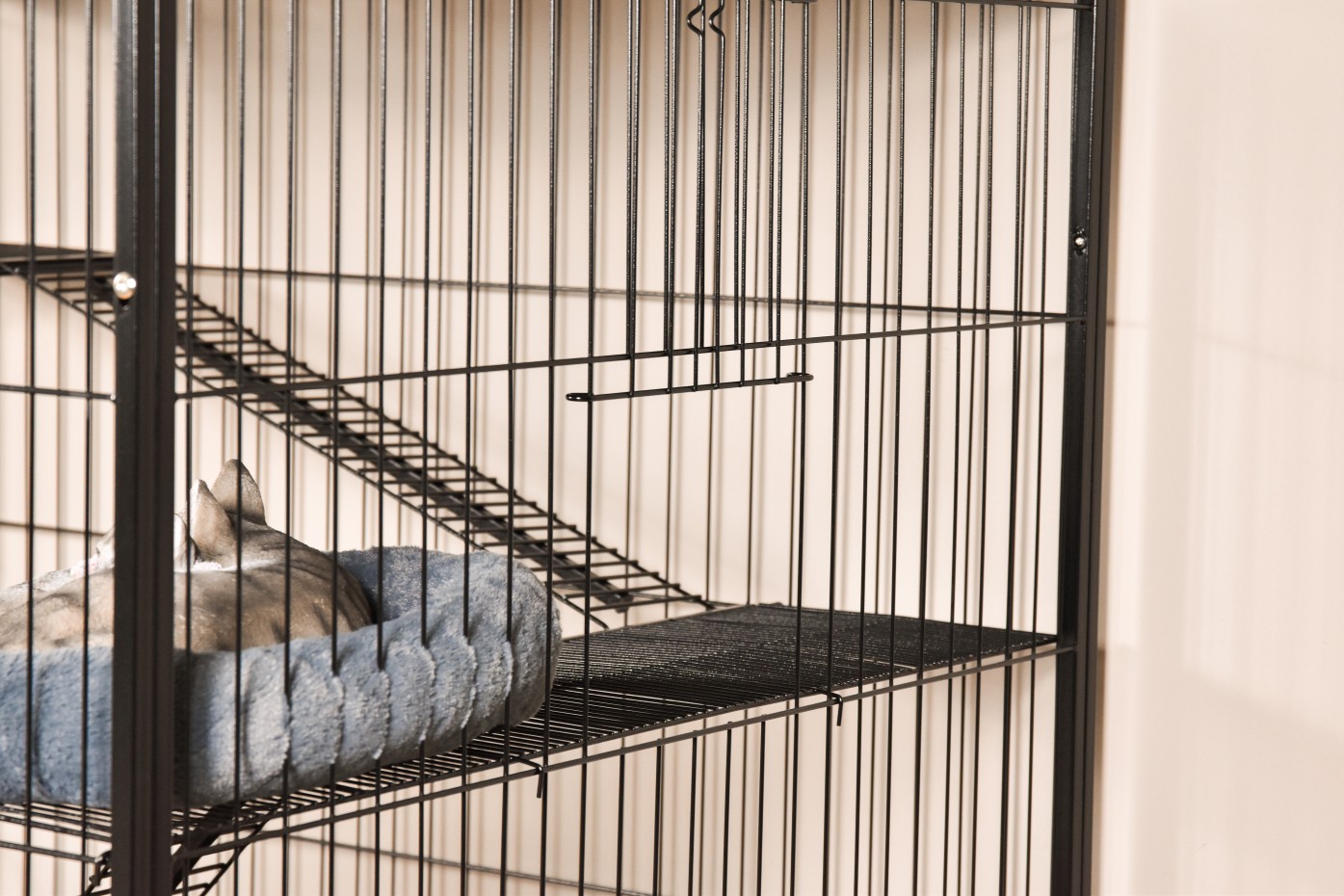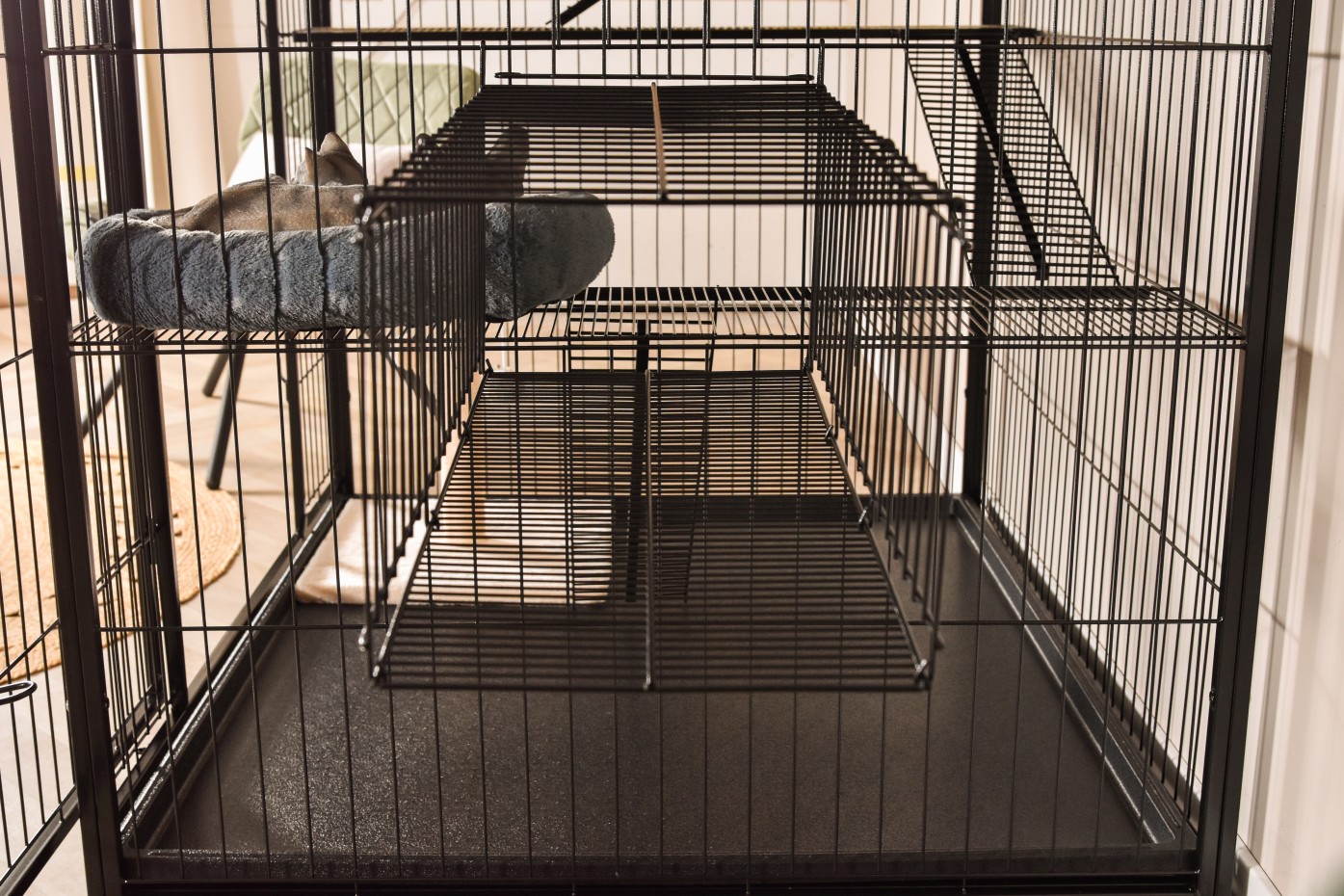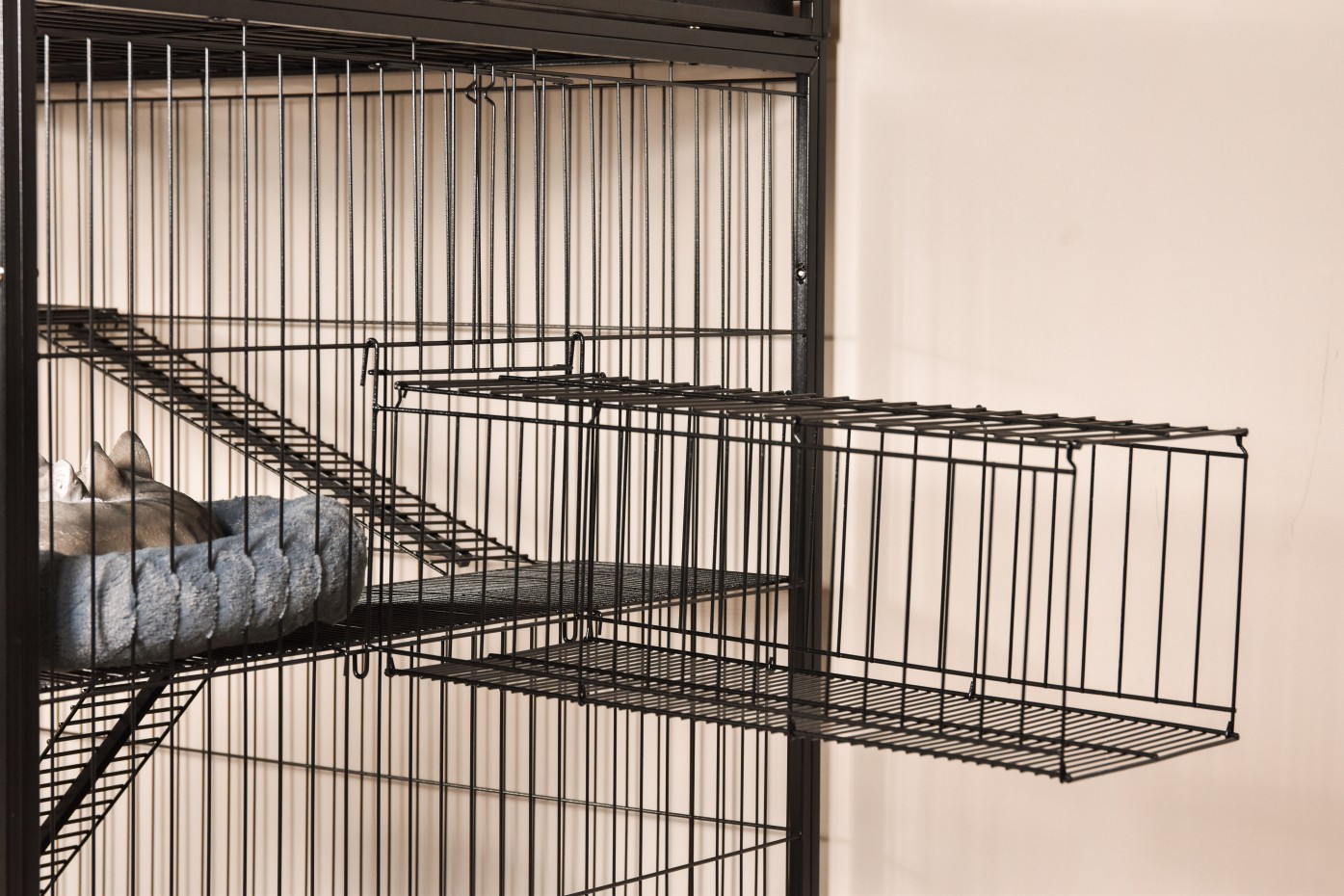 - Stabilna klatka dla kota z czarnymi prętami z powłoką młotkową