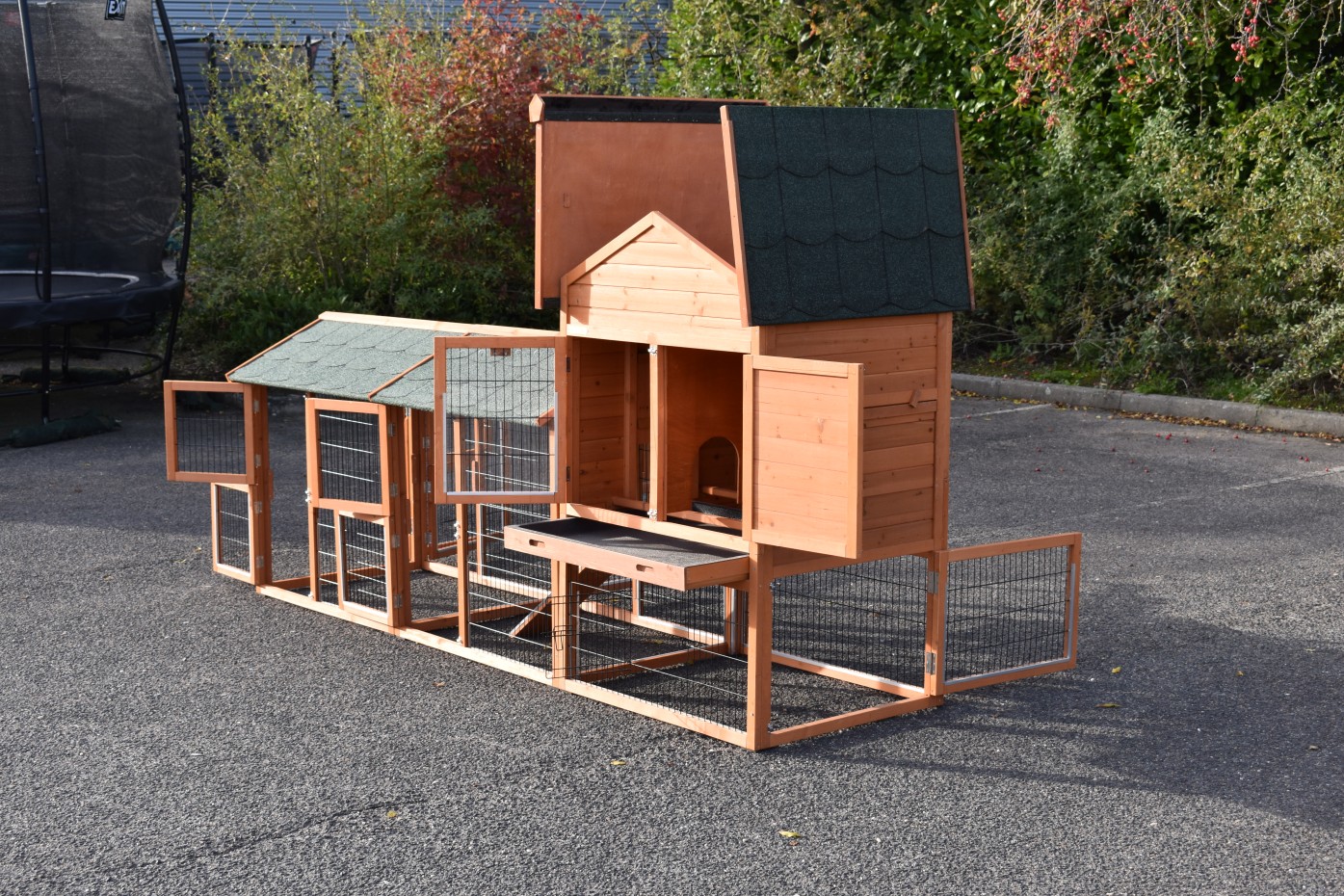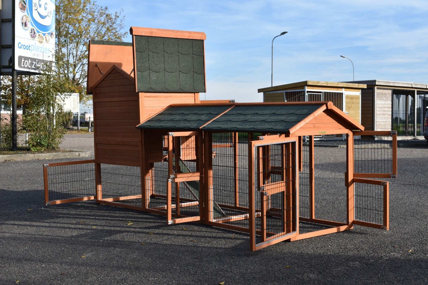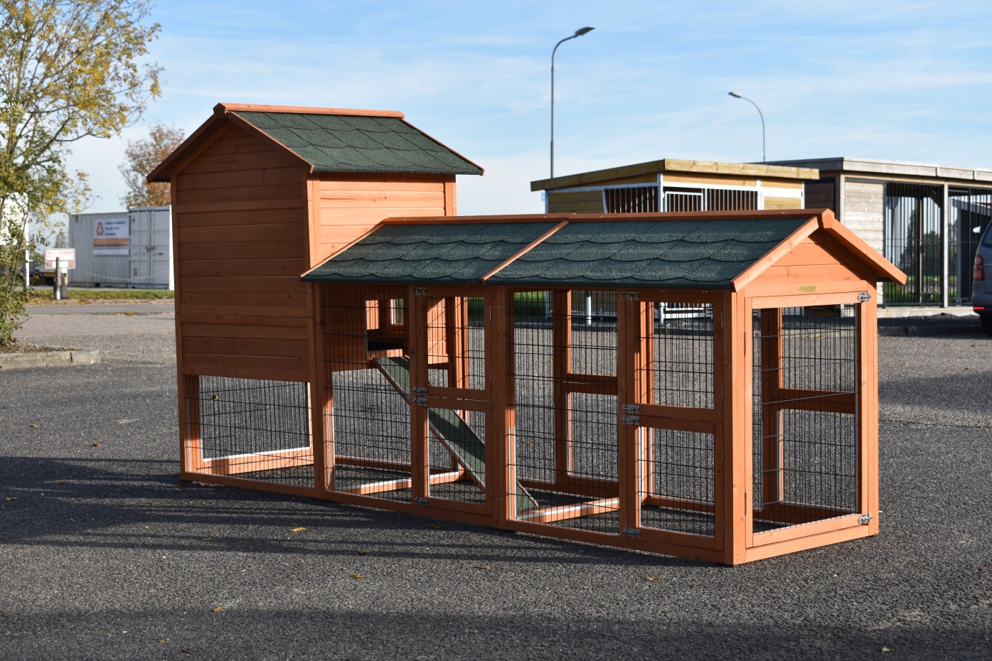Klatka dla królików Prestige Medium została wykończona aluminium na najbardziej wrażliwych obszarach, aby uniemożliwić królikom obgryzanie drewna. Fantastyczna klatka dla twoich królików. Ta piękna klatka dla królików jest doskonale wykonana, z dużymi drzwiami i przestronną komorą na noc. Klatka jest umieszczona na gumowych nóżkach dla optymalnej ochrony, co czyni ją bardzo praktyczną w użytkowaniu. Klatka Prestige Medium dla królików jest rozszerzalna, na przykład o wybiegi. Możesz także łatwo złożyć tę klatkę dla kurcząt odwrotnie, dokonując niewielkich zmian.