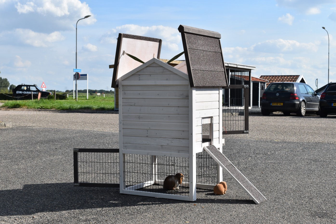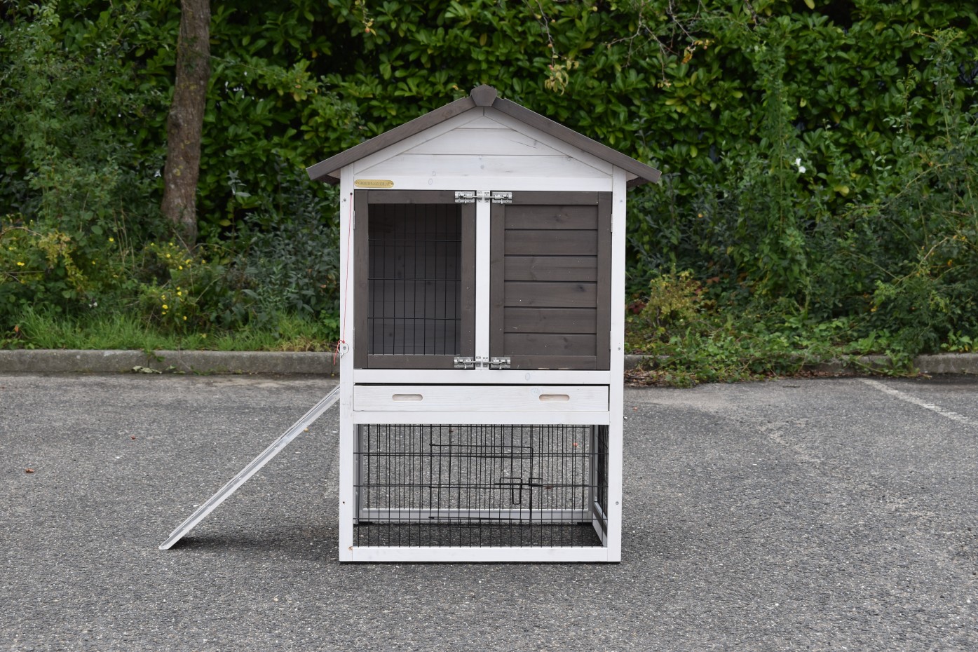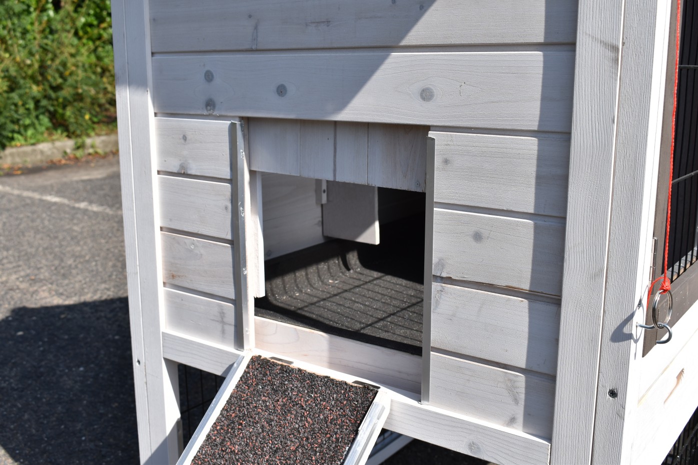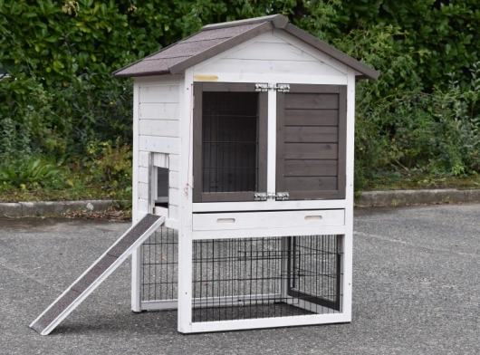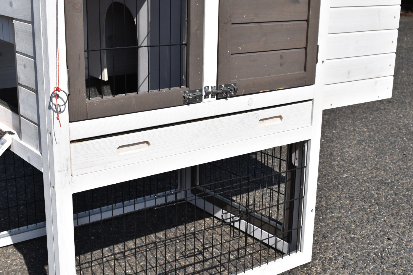 Rabbit Hutch Prestige Small jest wysuwanym modułem schronienia dla królików. Fantastyczny domek dla Twoich królików. Drewno jest wykończone aluminiowymi listwami, które zapobiegają wyrzynaniu się drewna przez króliki. To piękne schronisko dla królików jest wykończone w bardzo wysokim standardzie, posiada przestronne drzwi i duże nocne schronienie. Dzięki temu Prestige Small jest bardzo praktyczny w użyciu. Budka dla królików stoi na gumowych nóżkach dla optymalnej ochrony. Budka dla królików Prestige Small może być przedłużona za pomocą wybiegów. Przy niewielkiej adaptacji można bez problemu zbudować kurnik również w drugą stronę.