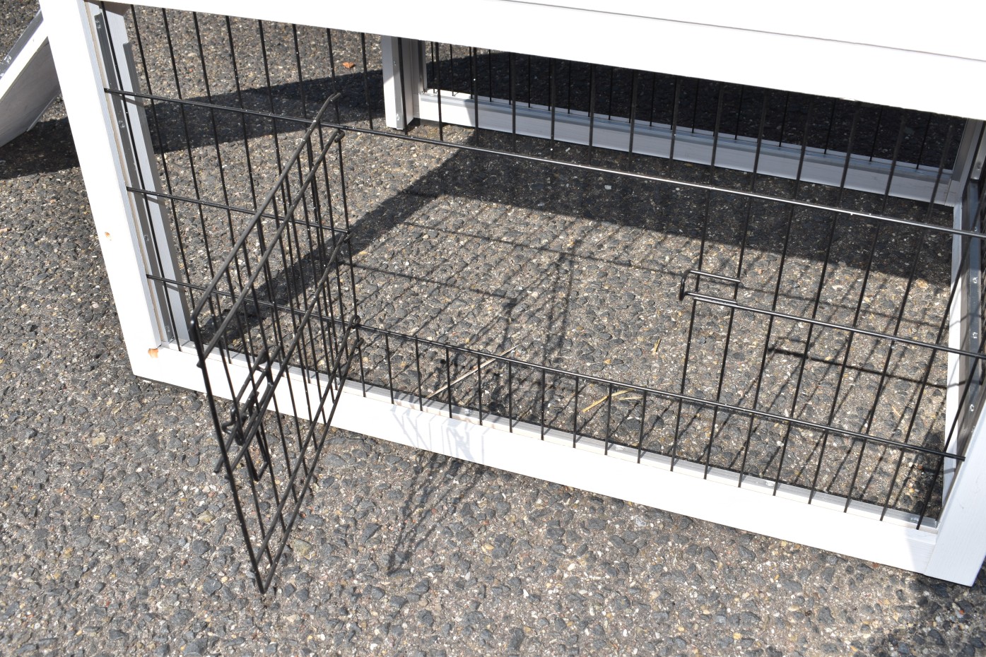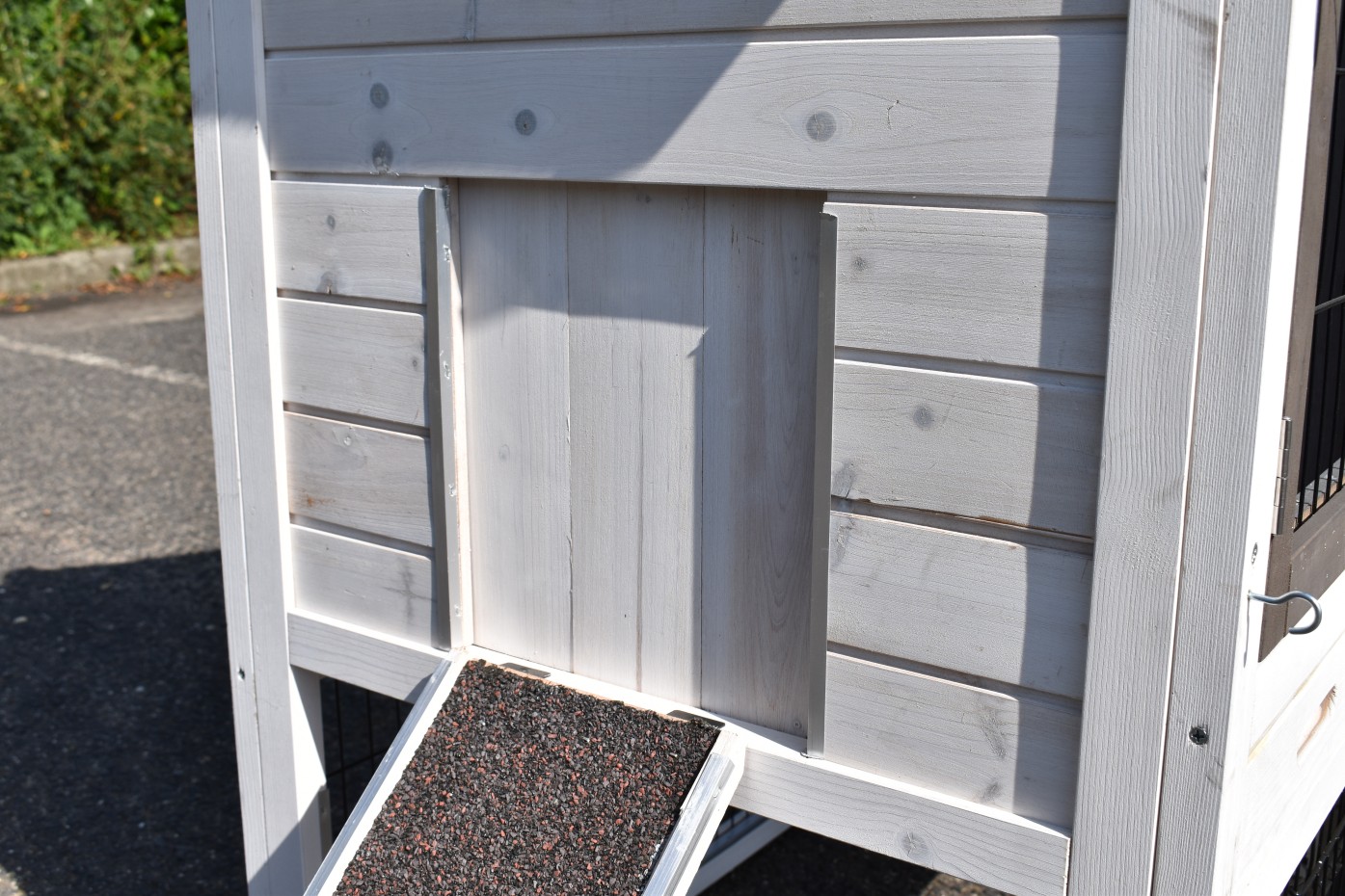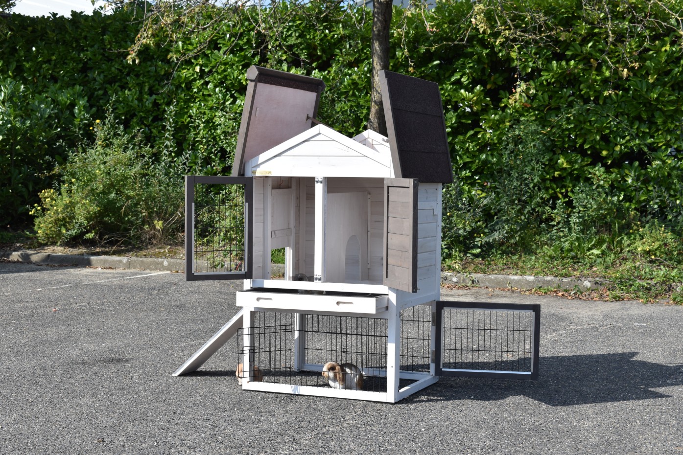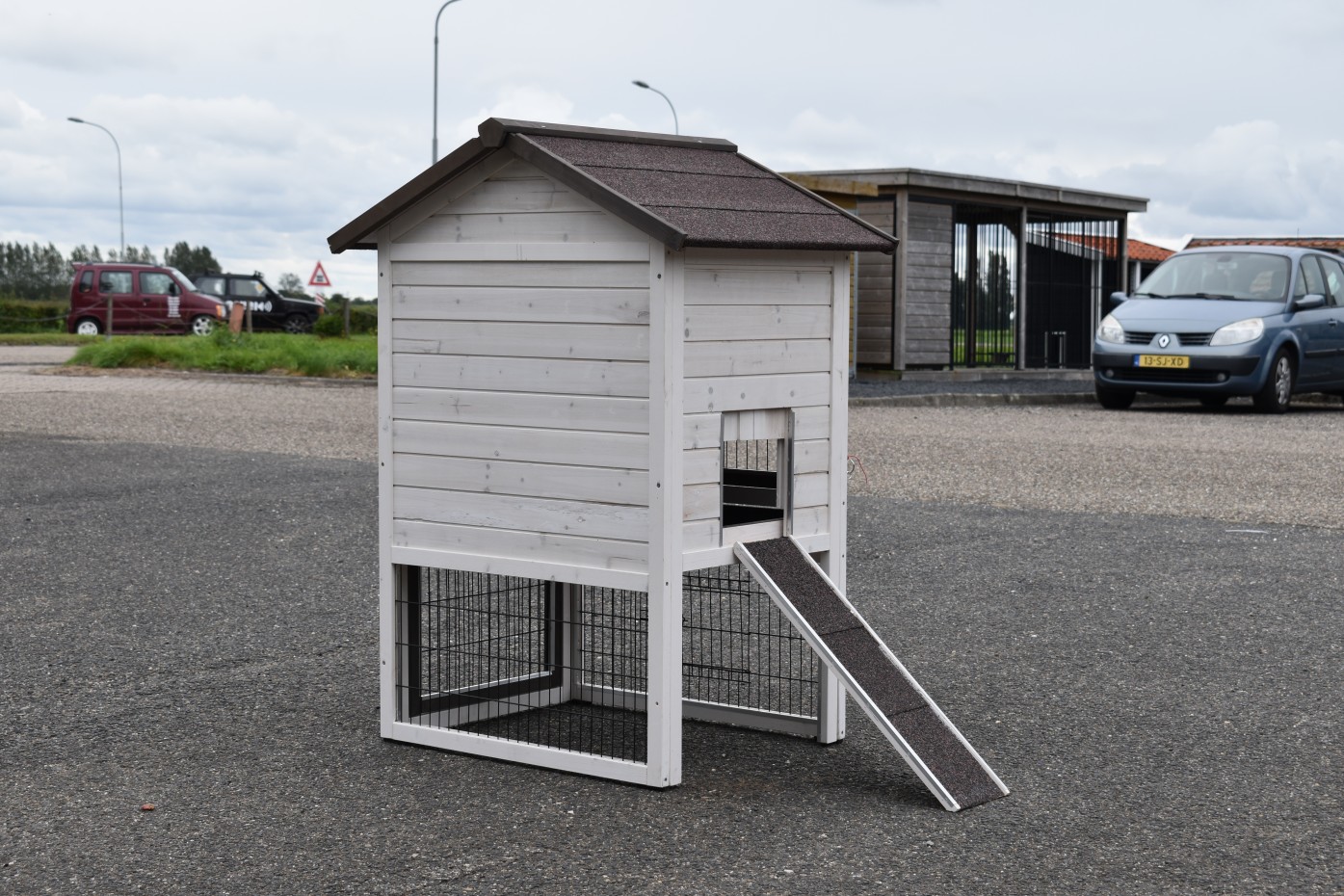 Rabbit Hutch Prestige Small jest wysuwanym modułem schronienia dla królików. Fantastyczny domek dla Twoich królików. Drewno jest wykończone aluminiowymi listwami, które zapobiegają wyrzynaniu się drewna przez króliki. To piękne schronisko dla królików jest wykończone w bardzo wysokim standardzie, posiada przestronne drzwi i duże nocne schronienie. Dzięki temu Prestige Small jest bardzo praktyczny w użyciu. Budka dla królików stoi na gumowych nóżkach dla optymalnej ochrony. Budka dla królików Prestige Small może być przedłużona za pomocą wybiegów. Przy niewielkiej adaptacji można bez problemu zbudować kurnik również w drugą stronę.