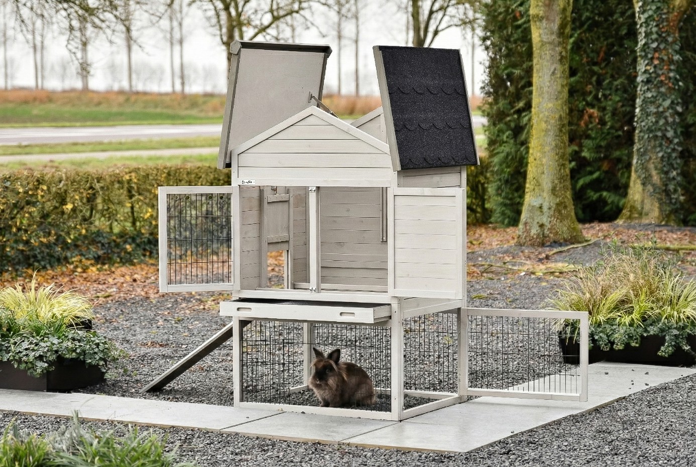 Klatka dla Królików Prestige Medium to idealny dom dla twoich futrzastych przyjaciół. Zaprojektowany z dbałością o szczegóły, z aluminium na brzegach, aby zapobiec gryzieniu. Ta klatka dla królików oferuje przestronne miejsce do spania, duże drzwi i stoi na solidnych gumowych nogach dla optymalnej ochrony. Można ją nieograniczenie rozbudowywać o dodatkowe wybiegi, pozwalając twoim królikom cieszyć się dodatkową przestrzenią do zabawy. Praktyczny i elastyczny, Prestiżowy Średni Klatka dla Królików oferuje to, co najlepsze dla twoich ukochanych królików.