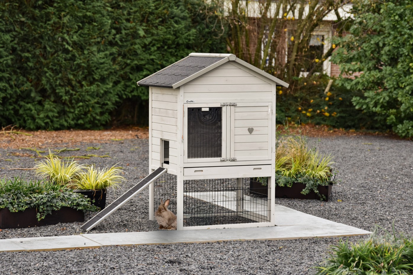 - Ustaw domek dla zwierząt prosto na płaskiej i twardej powierzchni