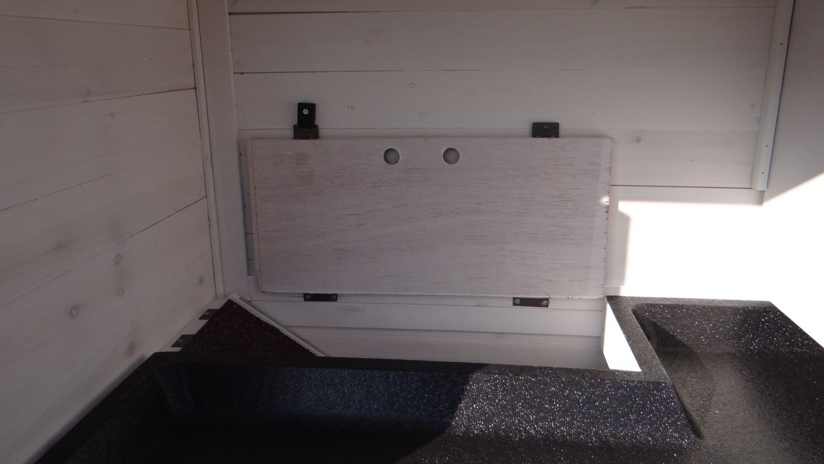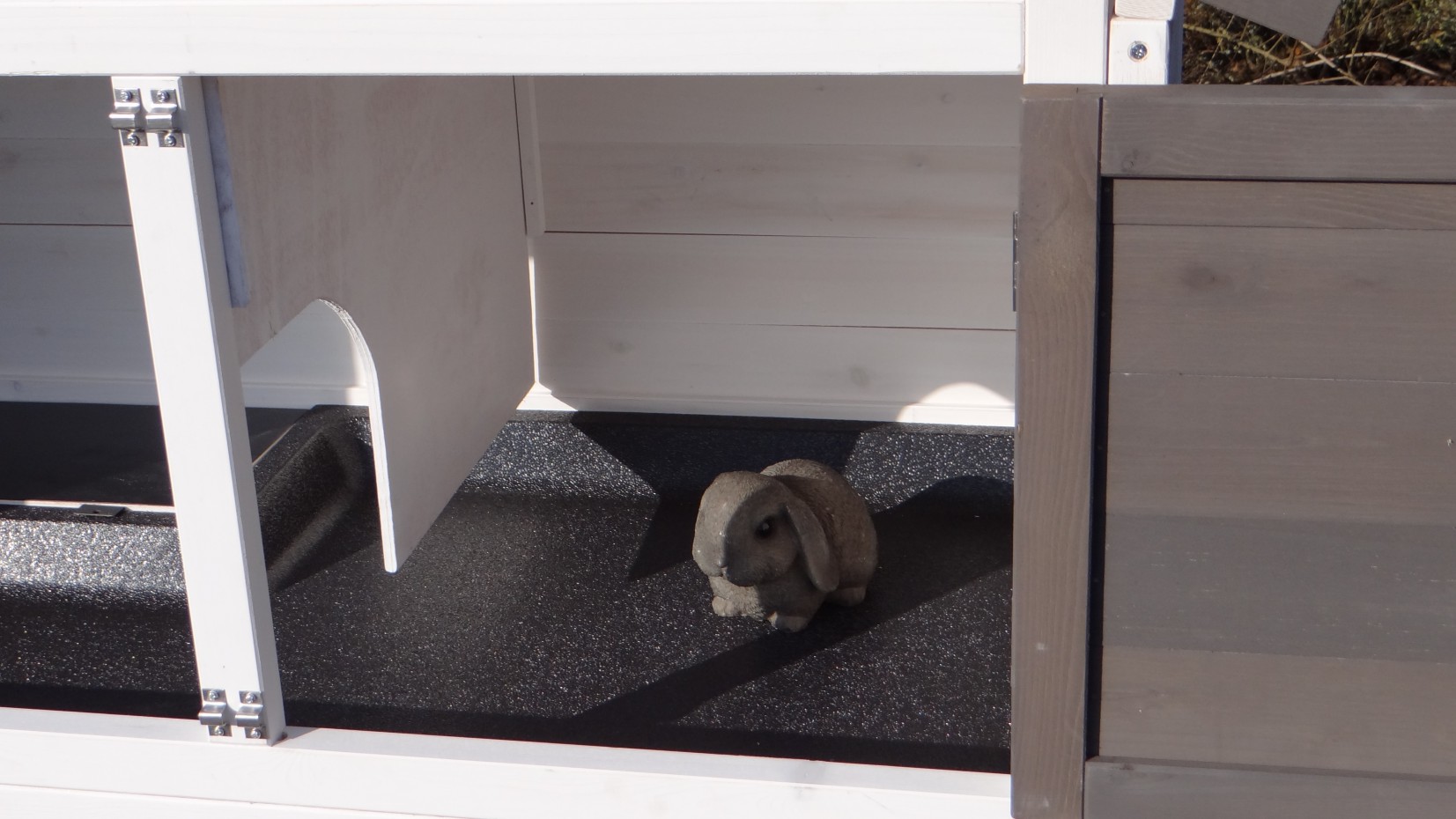 - Jeśli domek dla zwierząt jest używany jako klatka wewnętrzna, zalecamy przykrycie podłogi, aby na przykład zapobiec uszkodzeniom spowodowanym przez mocz