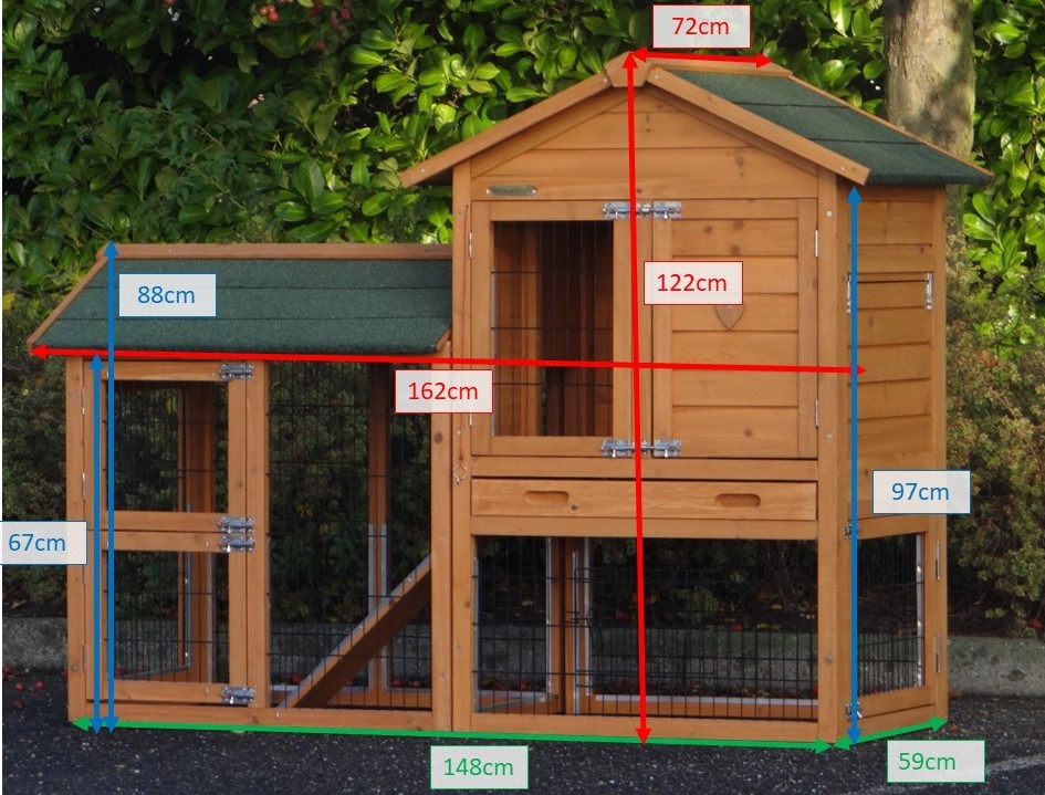 Klatka dla królików Prestige Small z wybiegiem to bezpieczny i wygodny domek dla Twoich królików. Szerokie drzwi i wysuwana plastikowa szuflada ułatwiają czyszczenie, a listwy ochronne i gumowe nóżki zwiększają trwałość. Wymiary: 162 × 72 × 122 cm.