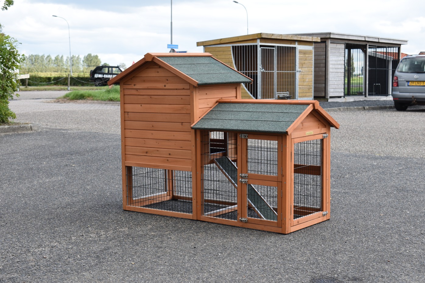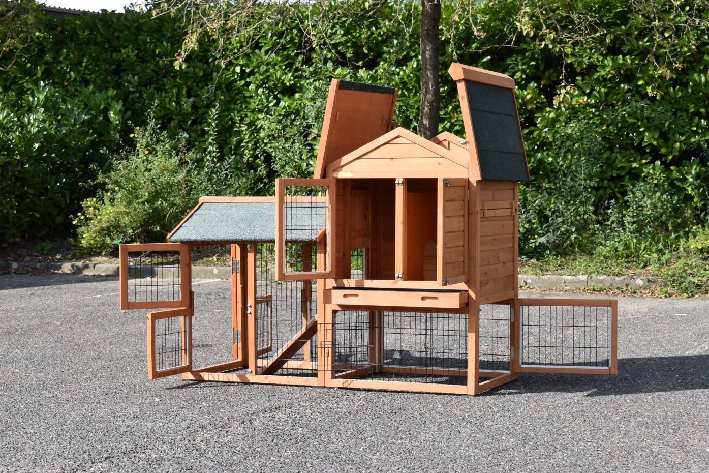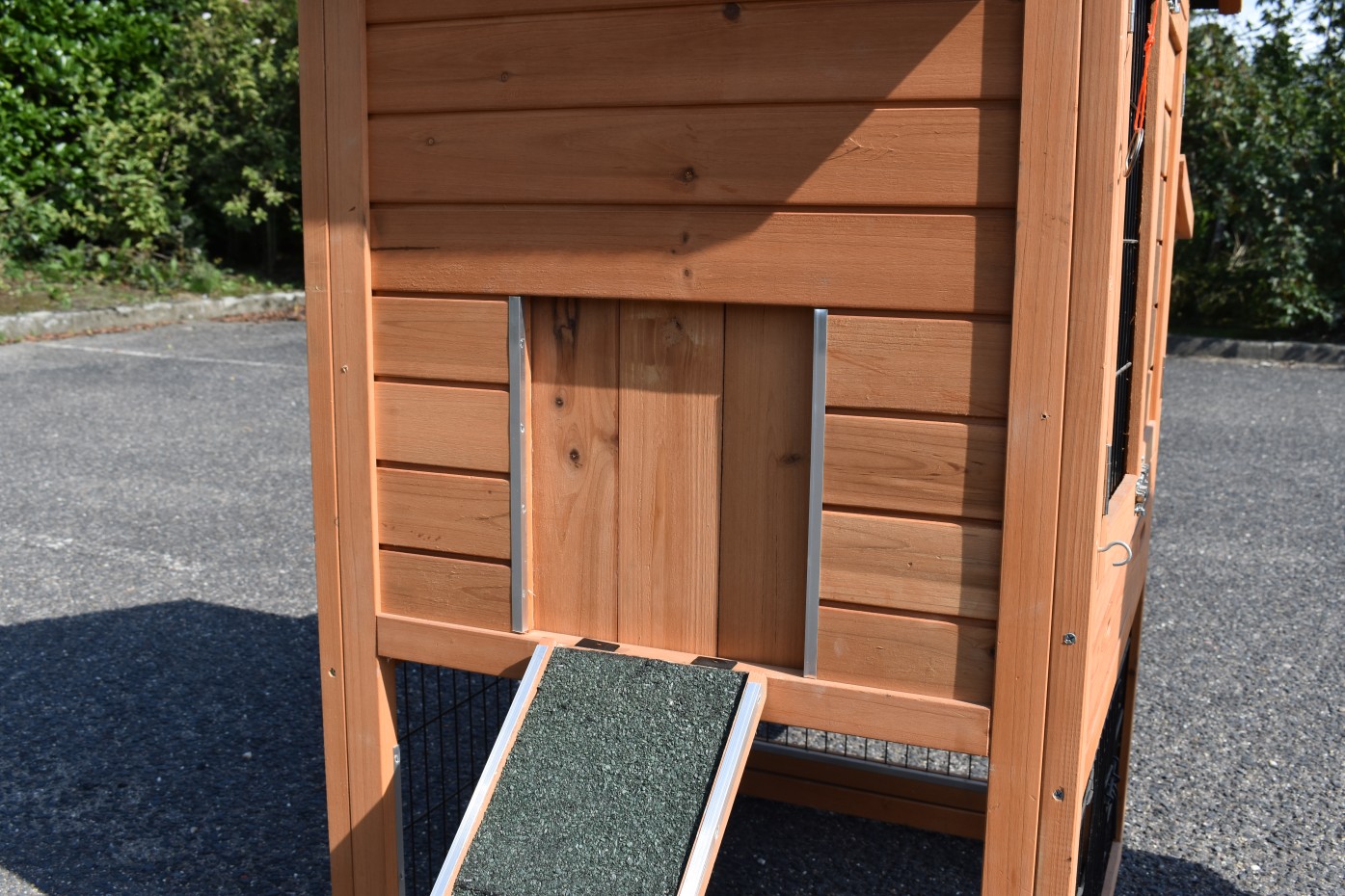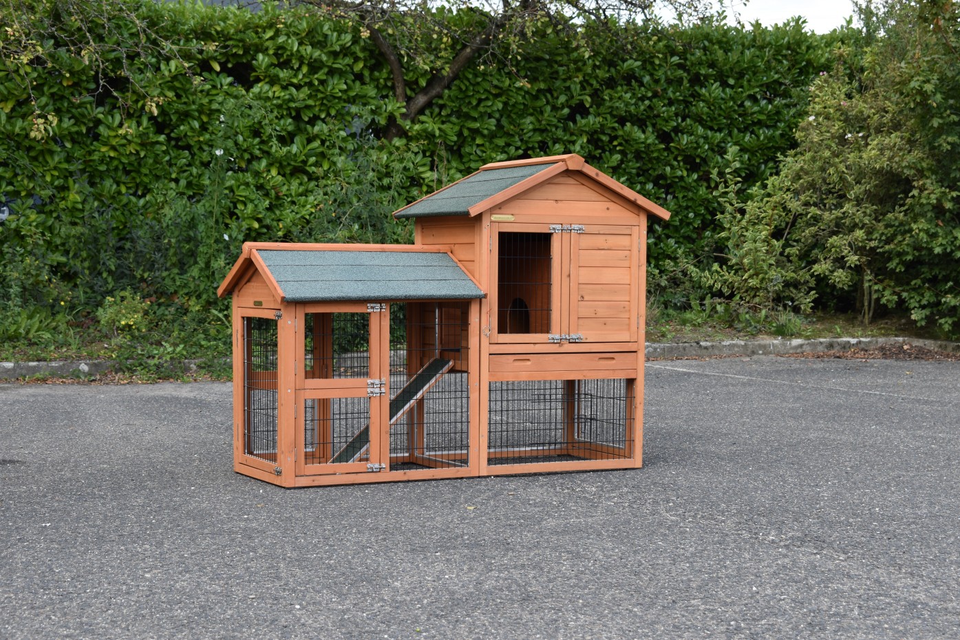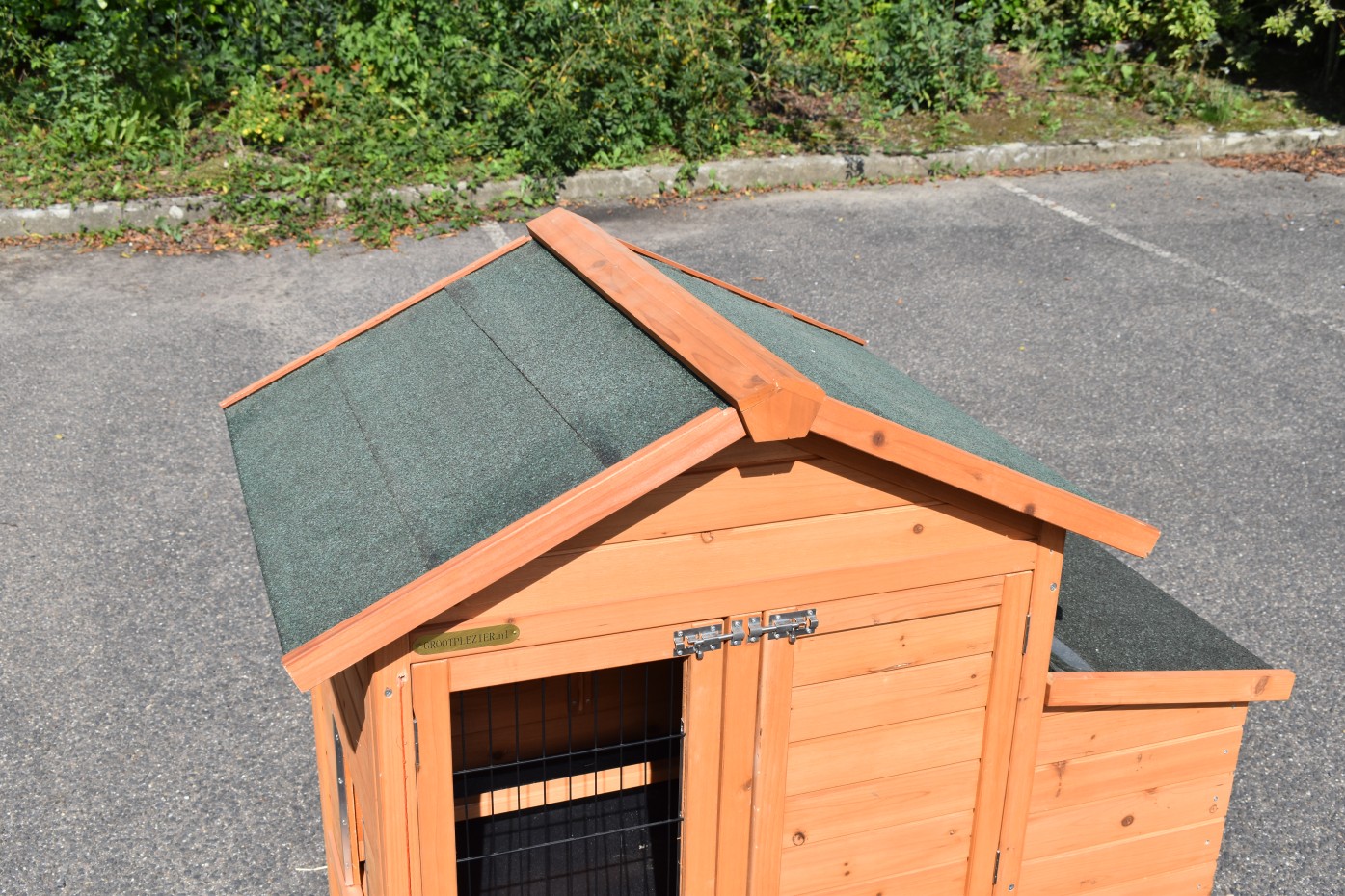 Ten dom dla zwierząt jest wykonany z drewna sosnowego w tradycyjny sposób. Drewno sosnowe jest szczególnie pięknym gatunkiem drewna iglastego, które od dawna jest cenione w naszej ofercie domów dla zwierząt. Odcienie nadają domek drewniany solidny i ciepły wygląd.