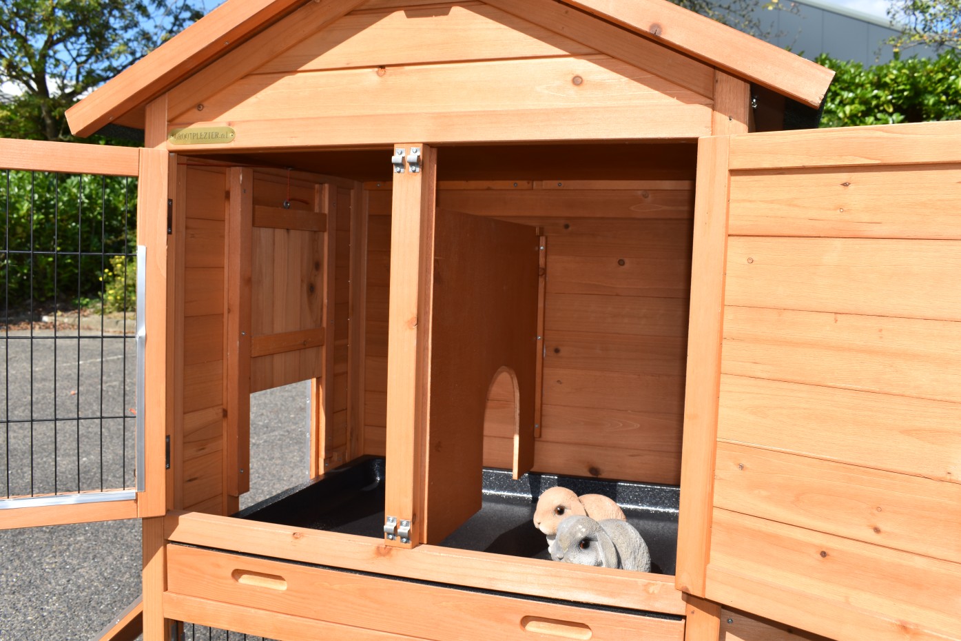 - Jeśli domek dla zwierząt jest używany jako klatka wewnętrzna, zalecamy przykrycie podłogi, aby na przykład zapobiec uszkodzeniom spowodowanym przez mocz