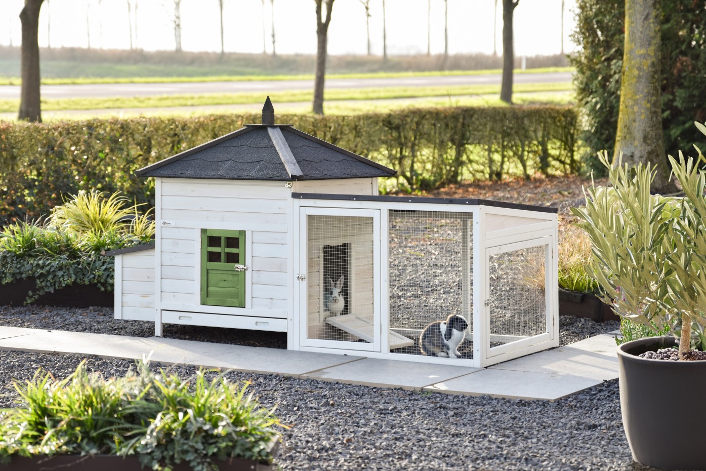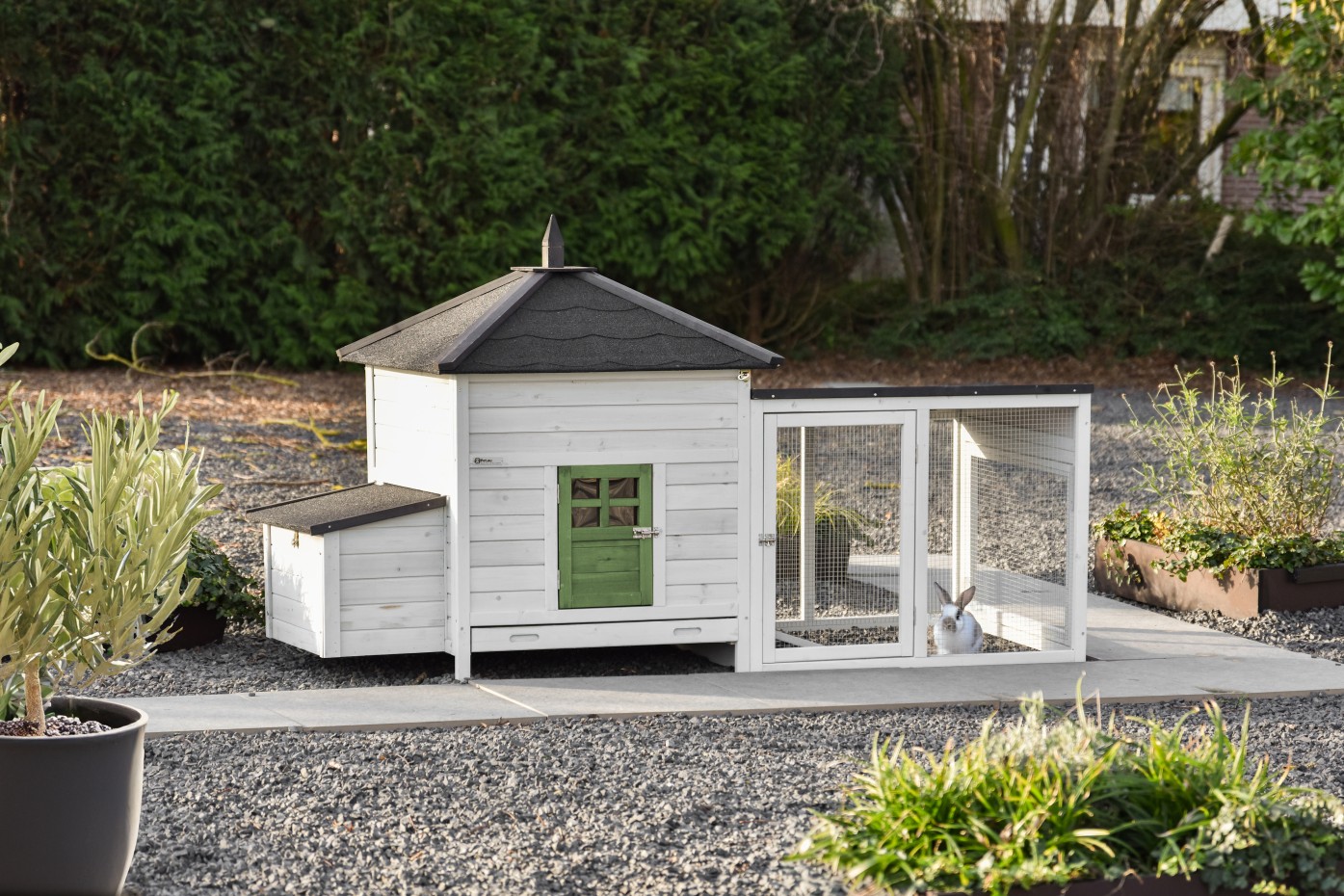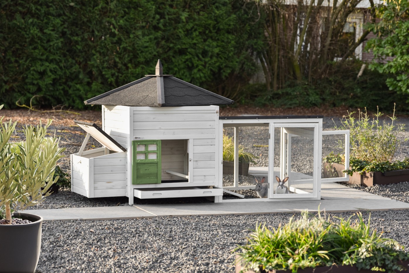 - Ten domek dla królików jest wyposażony w budkę lęgową