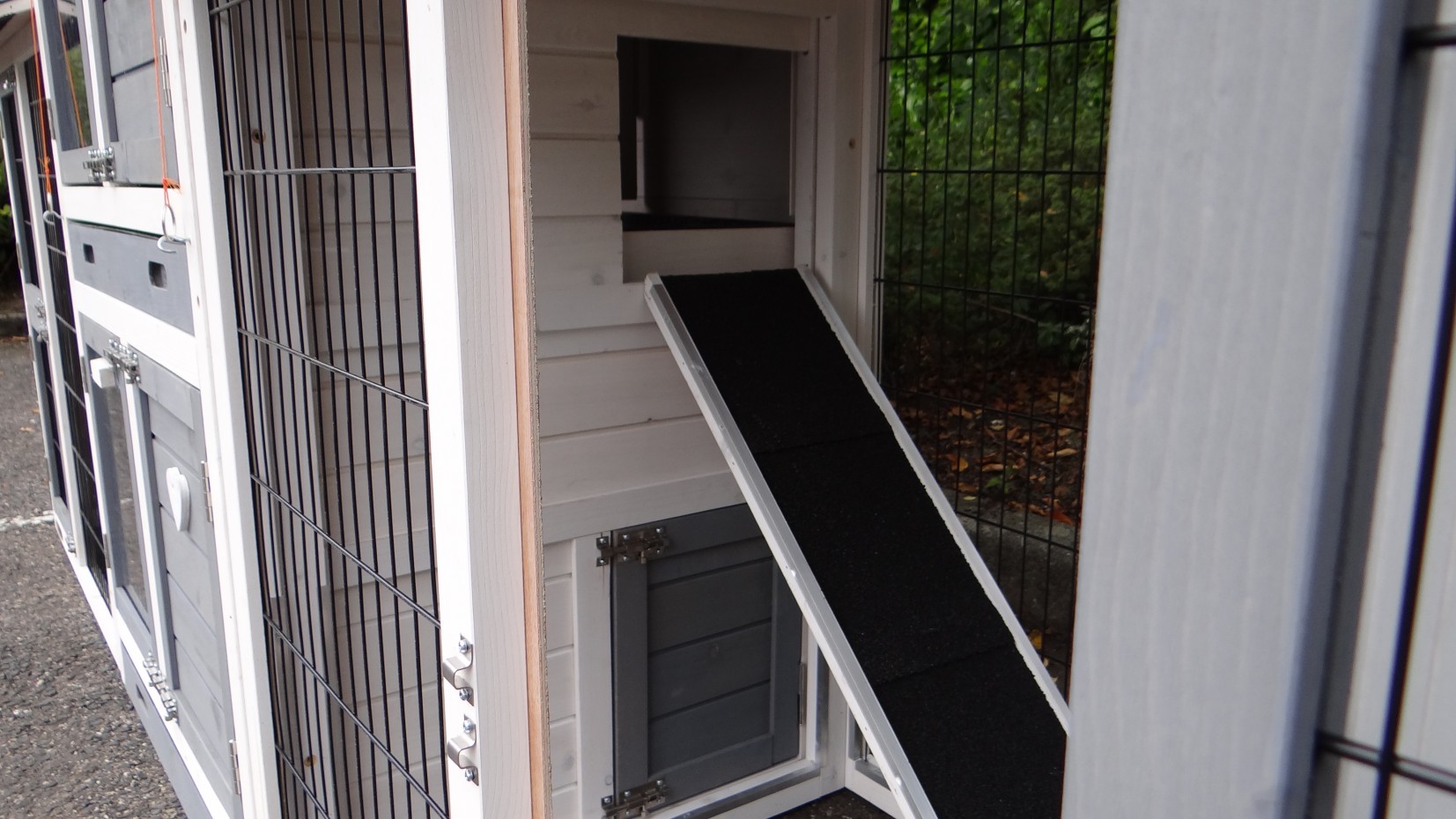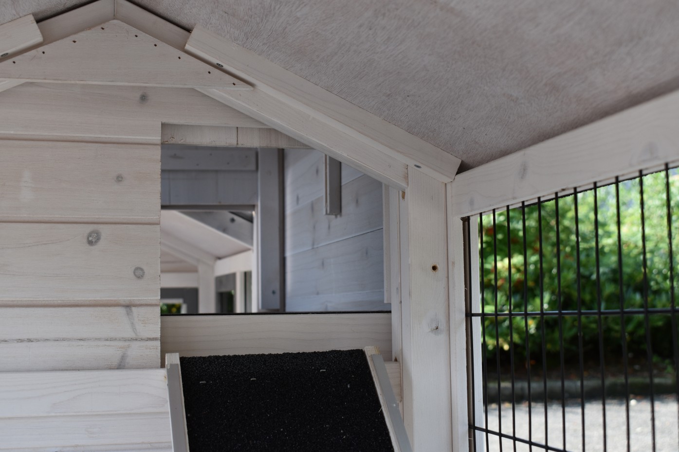- Jeśli domek dla zwierząt jest używany jako klatka wewnętrzna, zalecamy przykrycie podłogi, aby na przykład zapobiec uszkodzeniom spowodowanym przez mocz