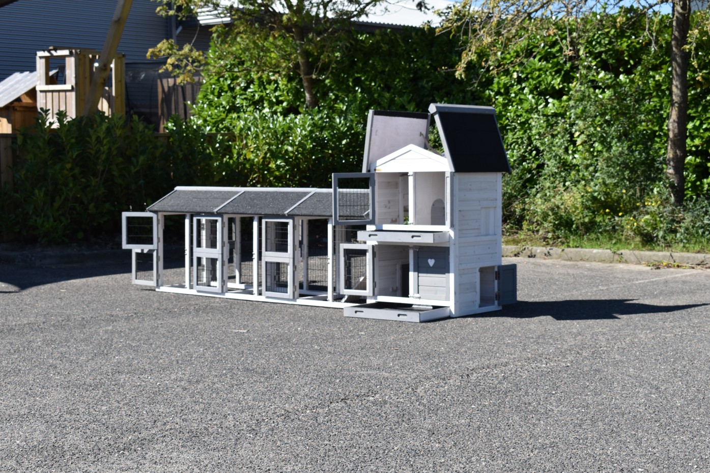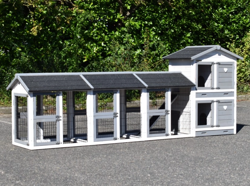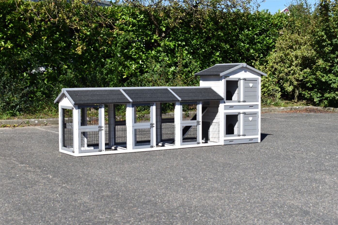 Klatka dla królików Double Small jest rozszerzona o 3 wybiegi. Klatka posiada 2 zamykane budki nocne, pozwalające na trzymanie kilku zwierząt oddzielnie. Klatka jest odpowiednia dla 2 do 4 królików.