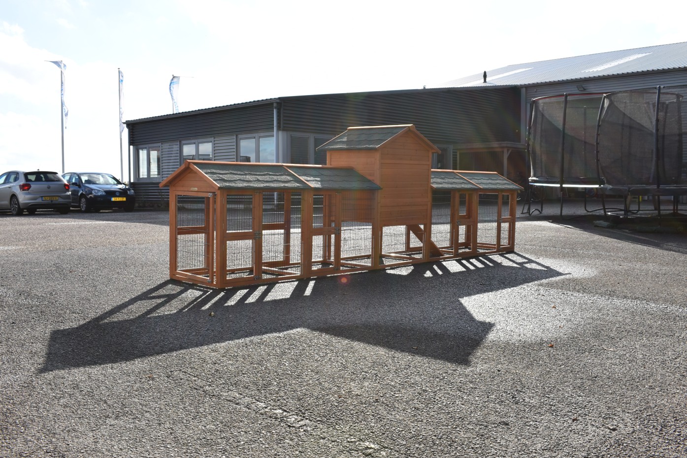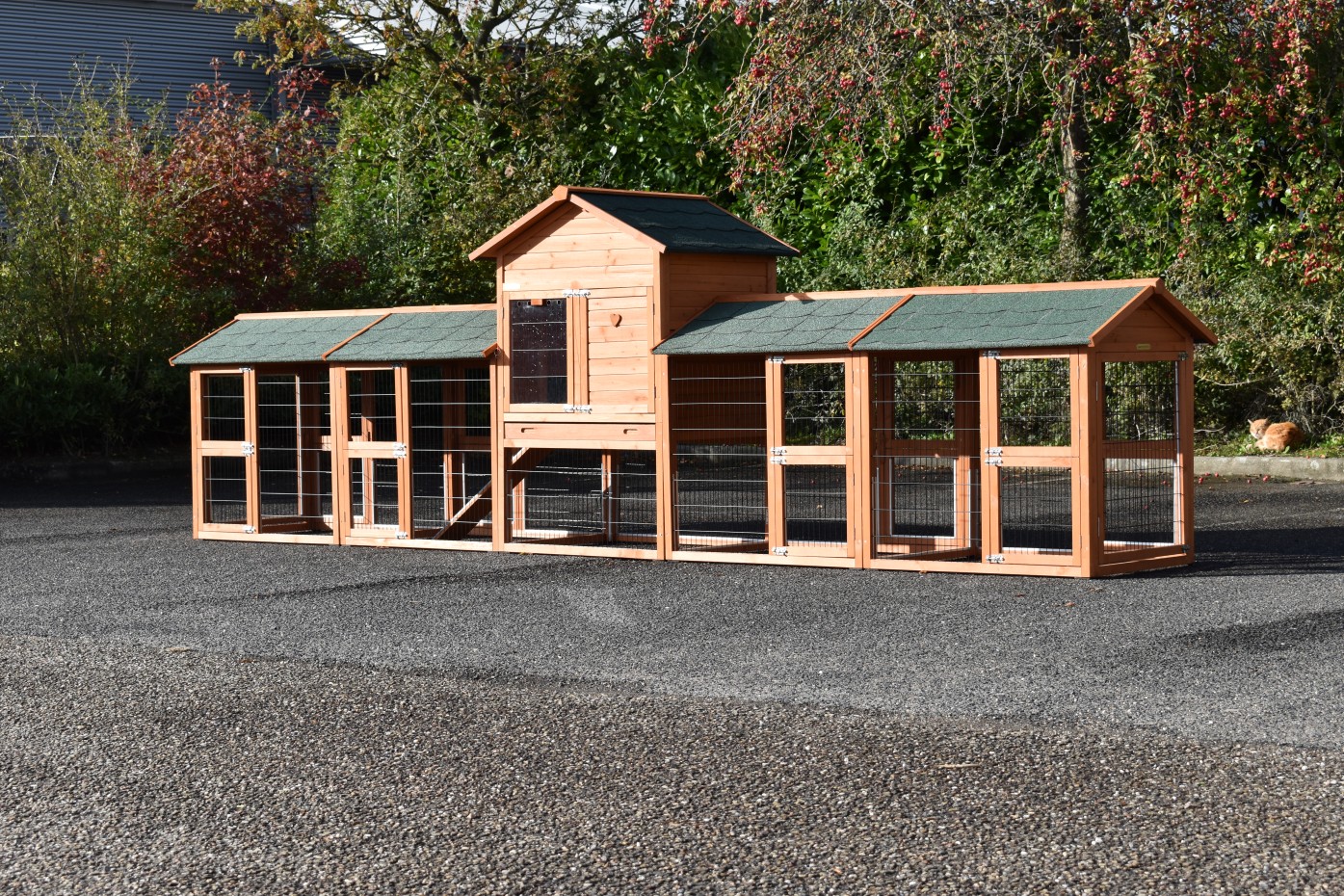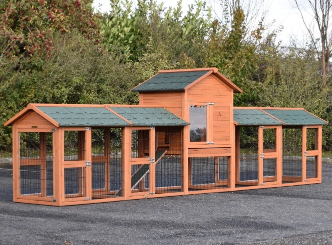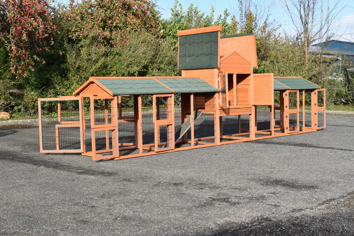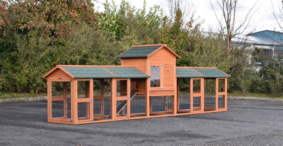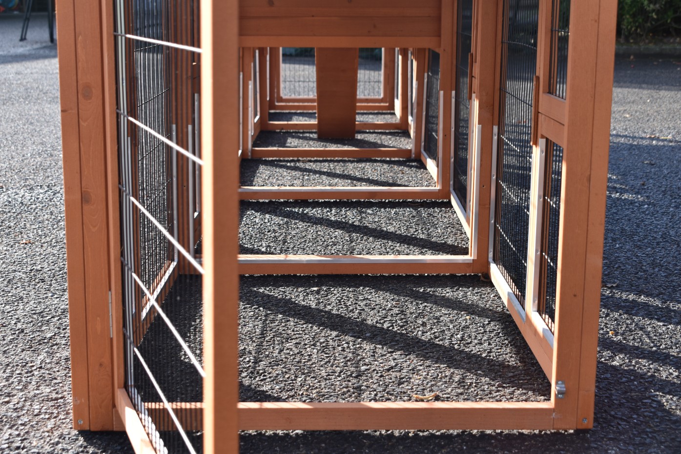Klatka dla królików Prestige Medium jest wykończona aluminiowymi krawędziami na najbardziej wrażliwych miejscach, aby króliki nie mogły gryźć drewna w dowolnym miejscu. Klatka dla królików została rozbudowana o 4 biegi. Ta piękna klatka dla królików jest doskonale wykonana, z przestronnymi drzwiami i obszernym miejscem do spania. Dla optymalnej ochrony klatka dla królików jest umieszczona na gumowych stopkach, co czyni ją niezwykle praktyczną w użytkowaniu. Można ją nieograniczenie rozbudować, np. o biegi rozszerzenia. Możesz także złożyć tę klatkę dla kur w odwrotnym lustrzanym odbiciu, dokonując niewielkich dostosowań.