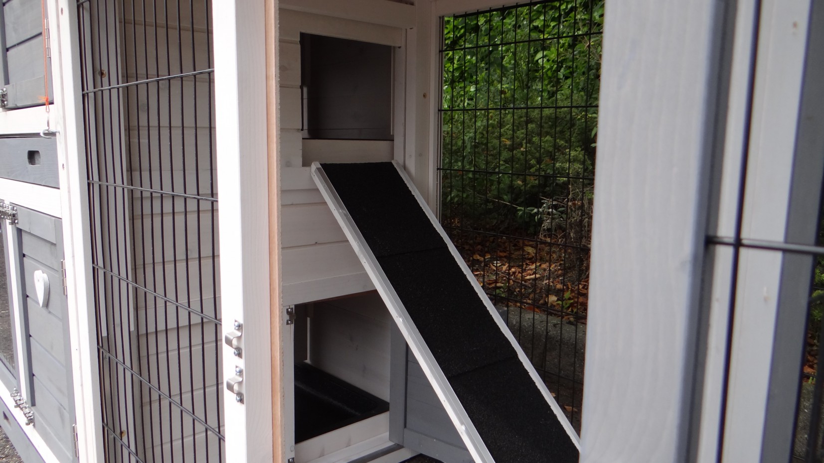 - Jeśli domek dla zwierząt jest używany jako klatka wewnętrzna, zalecamy przykrycie podłogi, aby na przykład zapobiec uszkodzeniom spowodowanym przez mocz