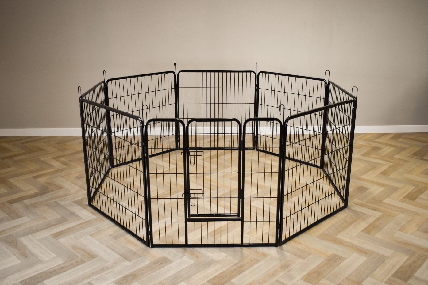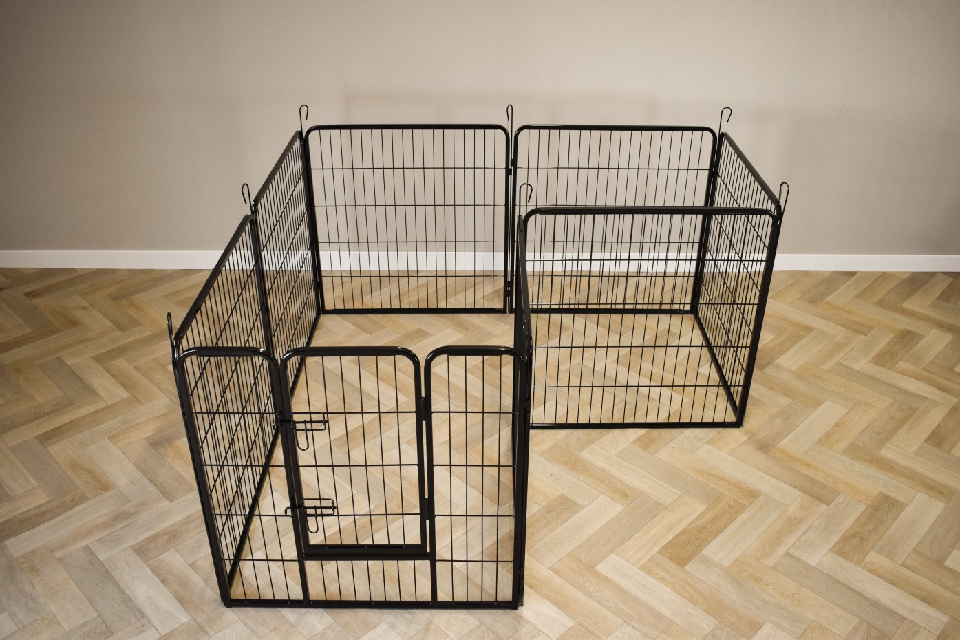 Rabbit Run Octa o wysokości 80cm. Ten wybieg dla królików wykonany jest z malowanej proszkowo stali. Wybieg dla królików Octa składa się z 8 paneli o wymiarach ok. 79x80cm. Całkowity obwód tego biegu wynosi około 640cm. Octa jest często używana dla królików i szczeniąt, ale oczywiście może być również używana jako wybieg dla wszelkiego rodzaju innych zwierząt.