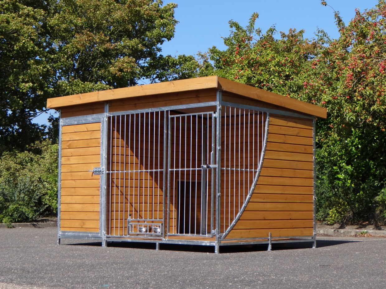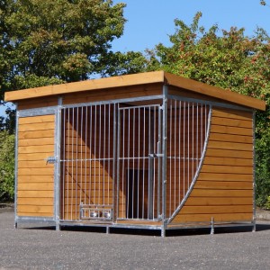 Buda dla psa Heavy to ciężka wersja budy z nocną wiatą i podłogą. Użyty materiał to głównie gruba stal, która jest dobrze ocynkowana, a drewno ma grubość nie mniejszą niż 21 mm. Ponieważ buda jest w pełni wyposażona w podłogę, jest łatwa do ustawienia i idealna do czyszczenia. Wiata nocna może być również podzielona na część sypialną i magazynową. Tutaj można przechowywać karmę, smycz i wiele innych atrybutów.