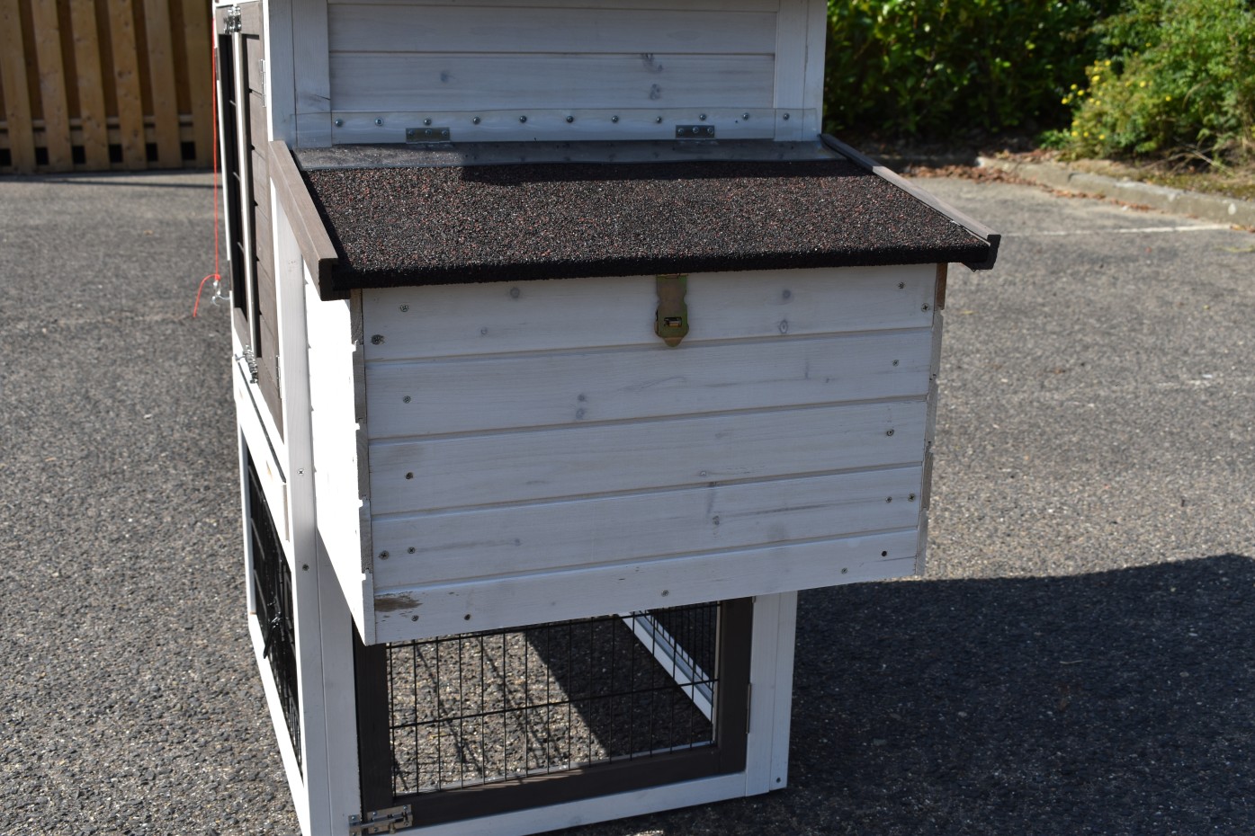 Ten dom dla zwierząt jest wykonany z drewna sosnowego w tradycyjny sposób. Drewno sosnowe jest szczególnie pięknym gatunkiem drewna iglastego, które od dawna jest cenione w naszej ofercie domów dla zwierząt. Odcienie nadają domek drewniany solidny i ciepły wygląd.