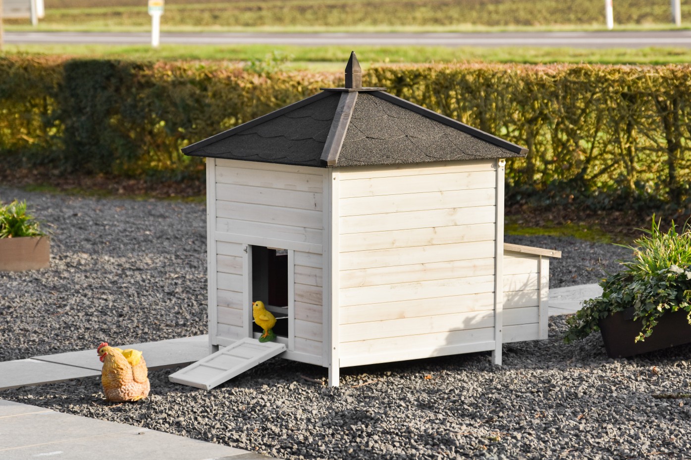 Ambiance to elegancki kurnik, który można dowolnie rozbudowywać o wybieg Ambiance Large. Dodatkowe wybiegi można zamówić osobno – pełna elastyczność!