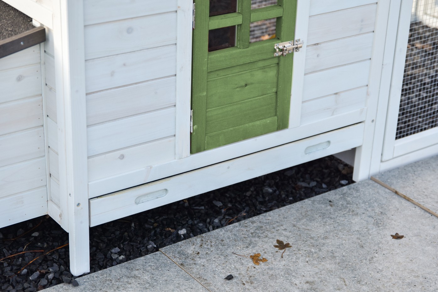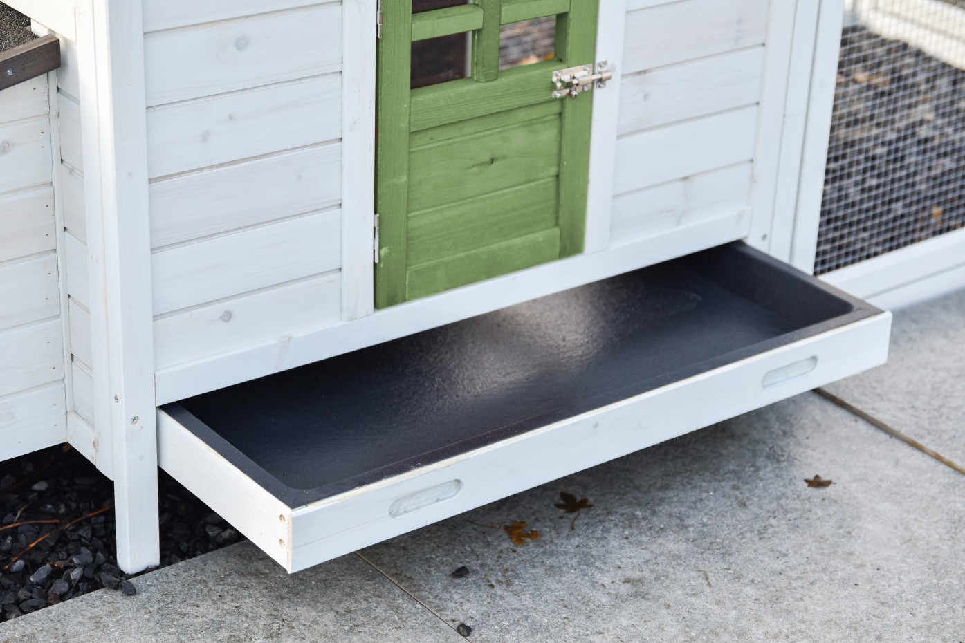 Ten kurnik posiada praktyczną, wysuwaną szufladę na odchody.