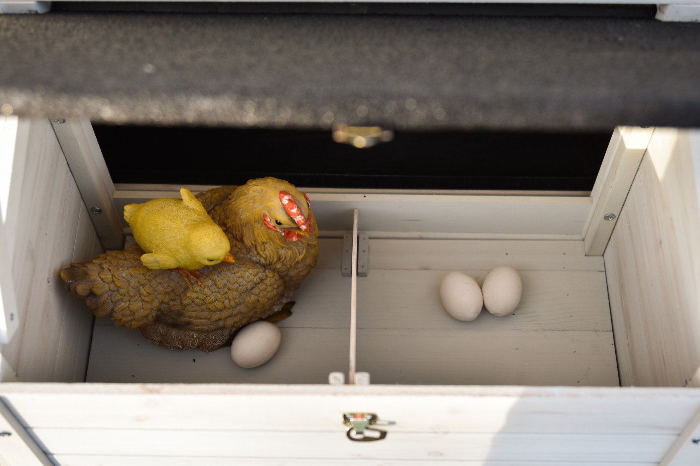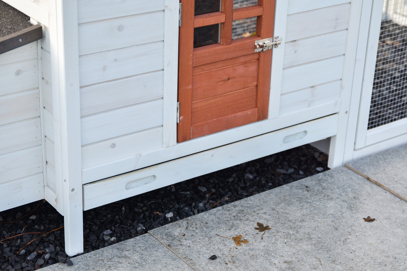 Ten kurnik posiada praktyczną, wysuwaną szufladę na odchody.