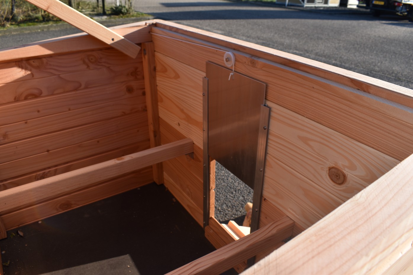 - Zamykana budka nocna: wyposażona w aluminiową przesuwaną roletę od wewnątrz