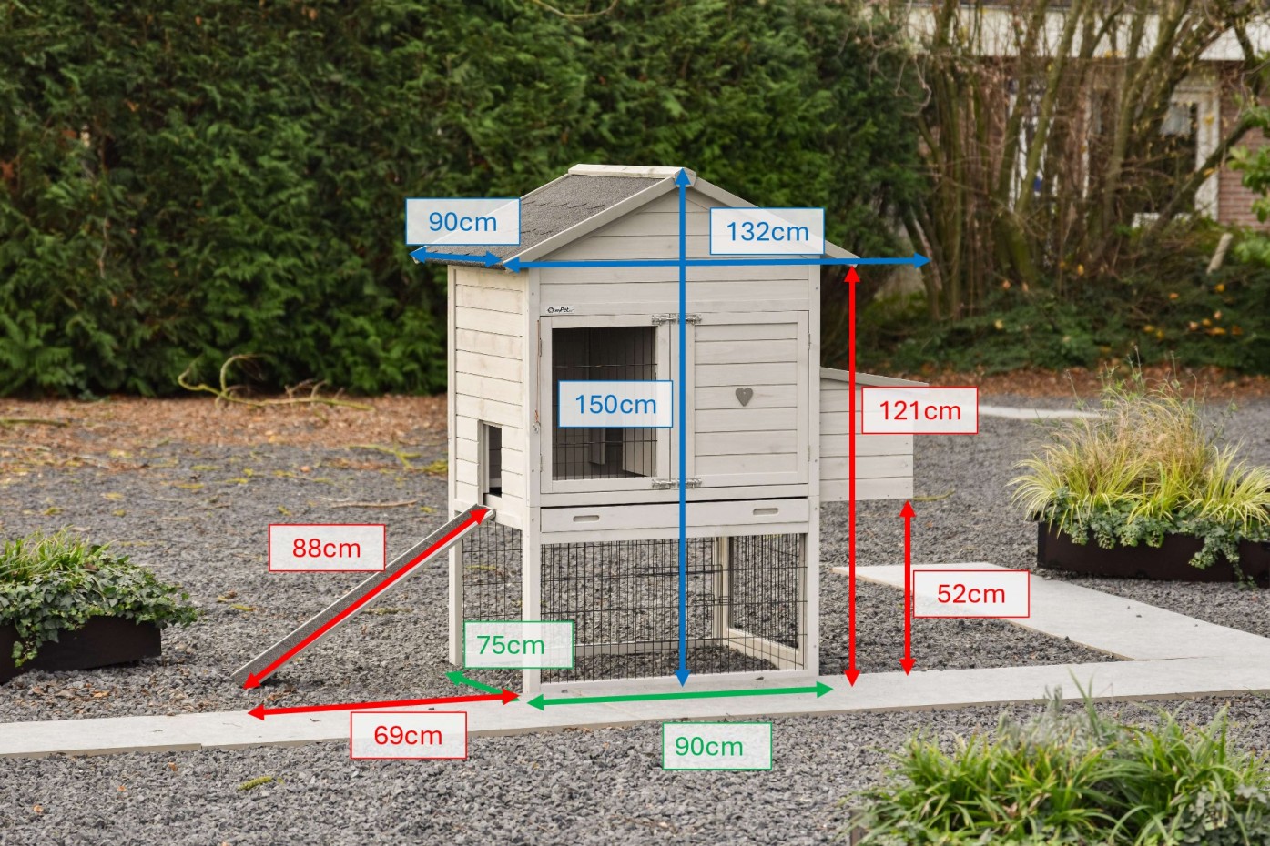 Hühnerstall Prestige Medium mit Legenest - ein schöner Stall für Ihre Hühner. Dieser Hühnerstall in guter Verarbeitung bis in jedes Detail verfügt über geräumige Türen, eine praktische Kotwanne und ein großzügiges Schlafhaus mit 2 Sitzstangen. Zum optimalen Schutz steht der Hühnerstall auf Kunststofffüßen. Durch diese Ausstattung ist der Hühnerstall Prestige Medium mit Legenest sehr benutzerfreundlich. Hühnerstall Prestige Medium mit Legenest lässt sich leicht mit u.a. Anbau-Auslaufmodulen ausbauen. Mit einer kleinen Anpassung können Sie den Hühnerstall auch spiegelbildlich aufbauen.