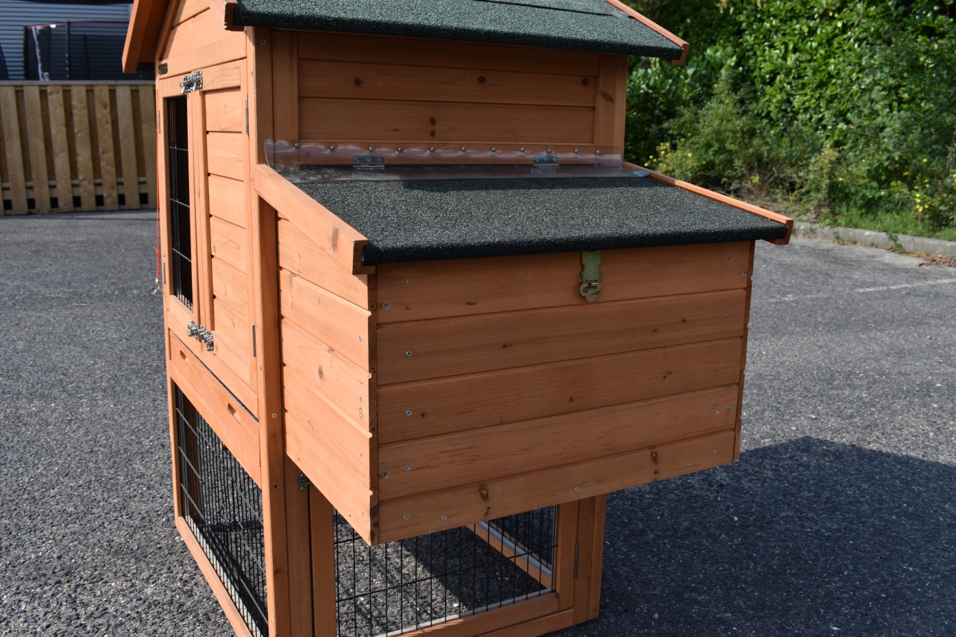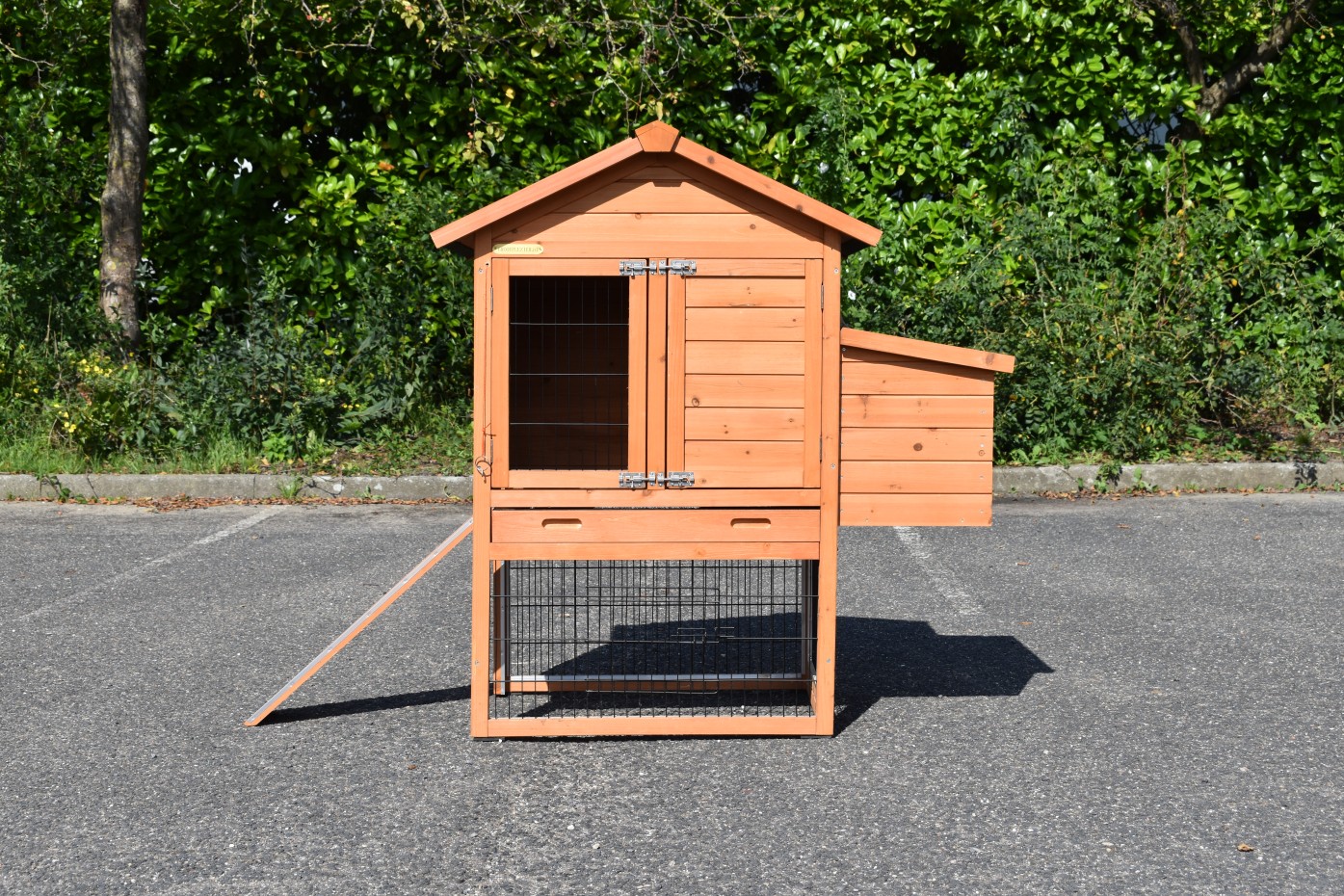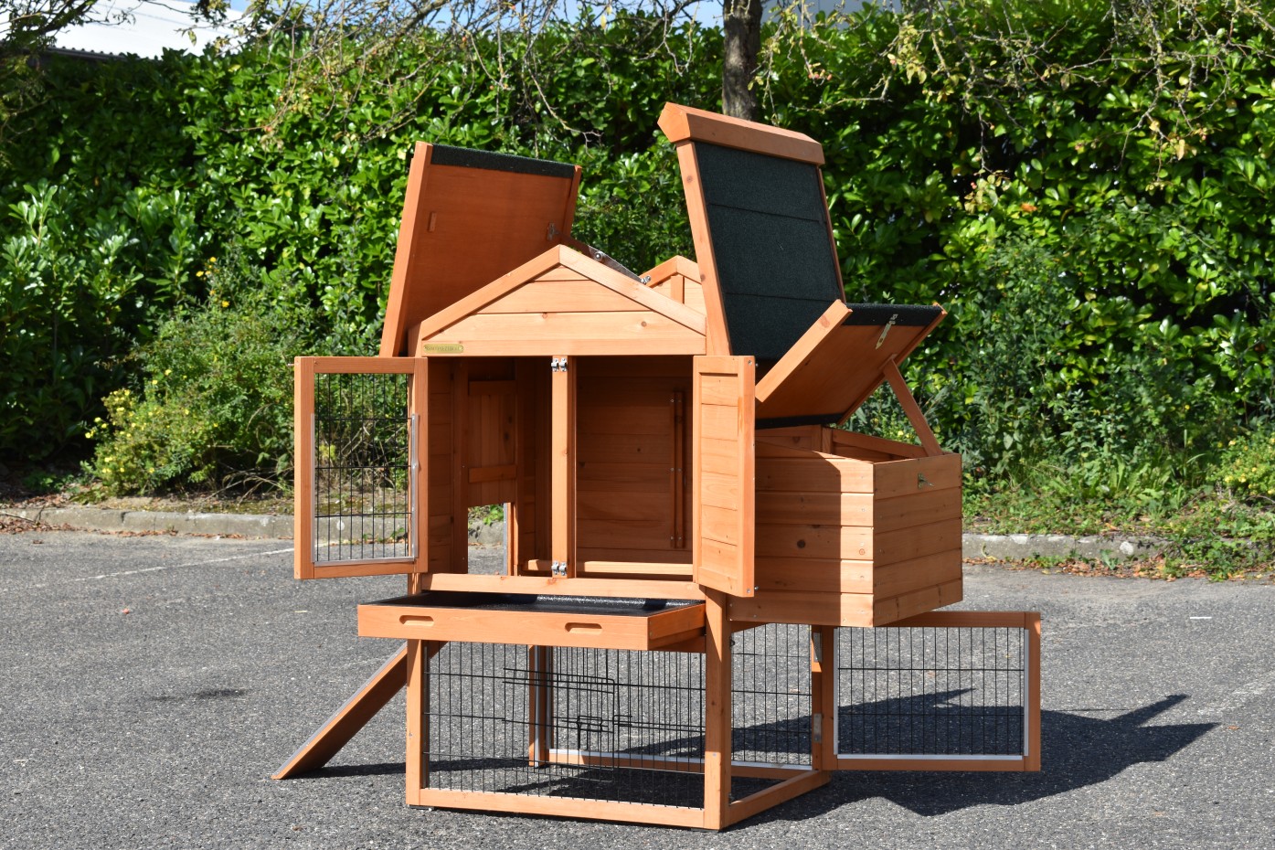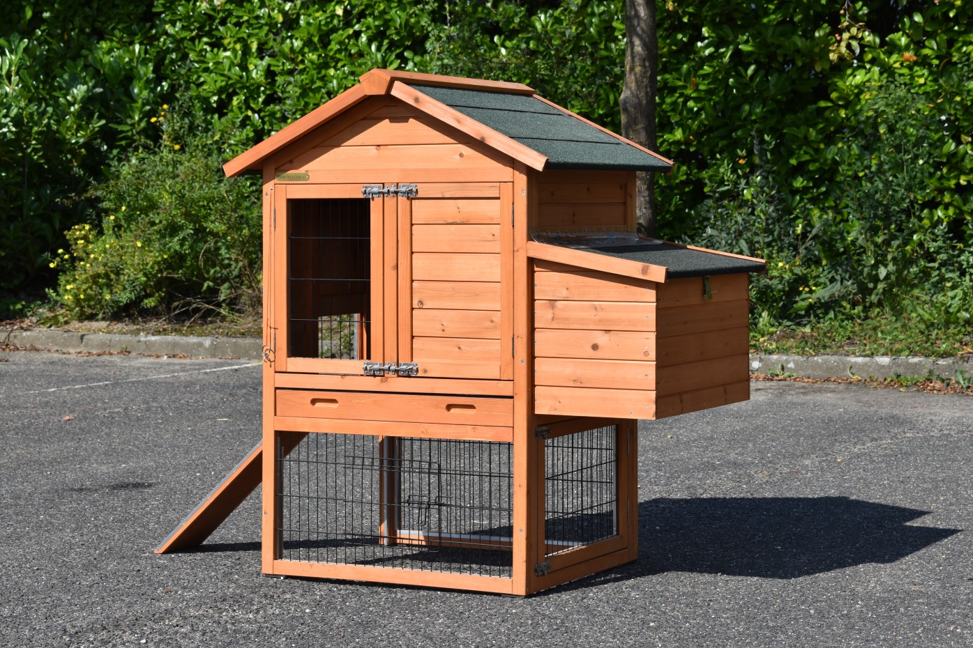 Kurnik jest dopracowany w każdym detalu – posiada szerokie drzwiczki, wygodną wysuwaną szufladę oraz część nocną z jedną grzędą.