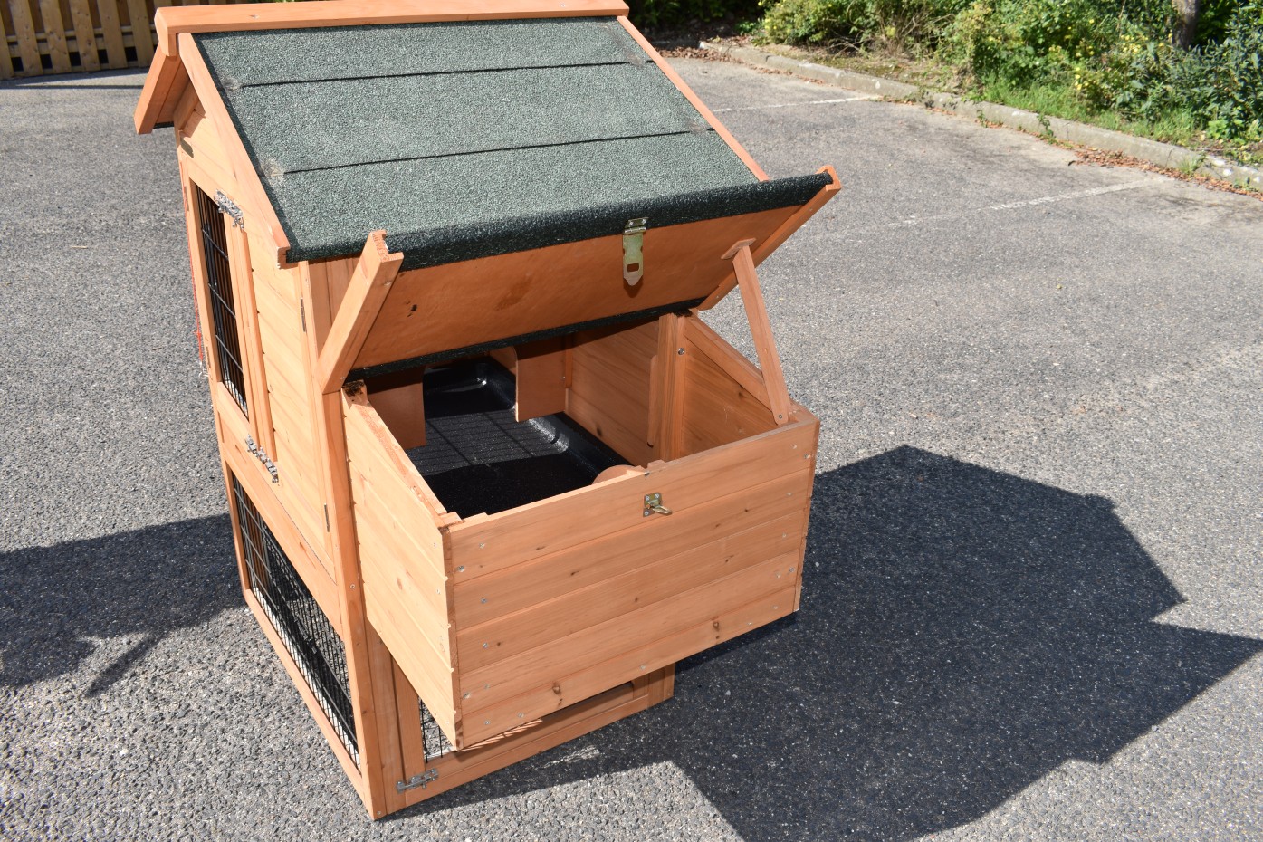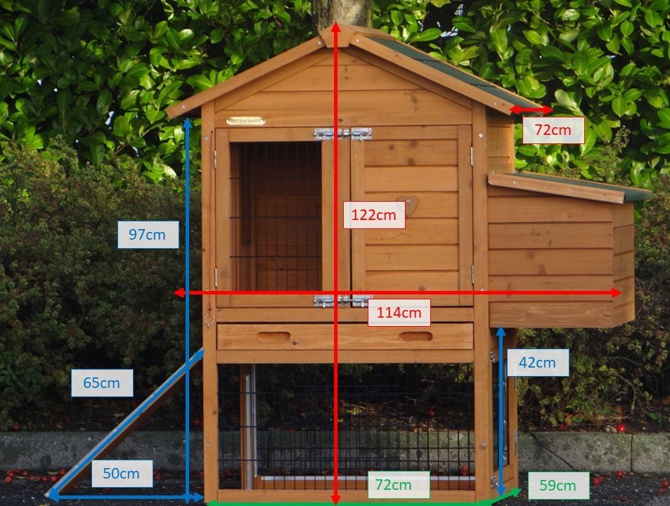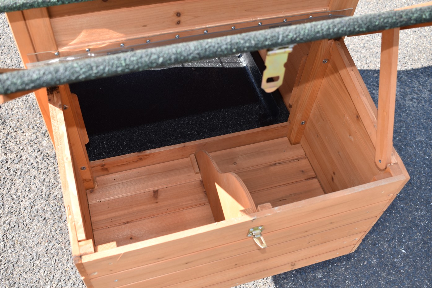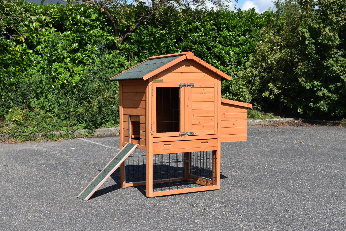 Kurnik jest dopracowany w każdym detalu – posiada szerokie drzwiczki, wygodną wysuwaną szufladę oraz część nocną z jedną grzędą.