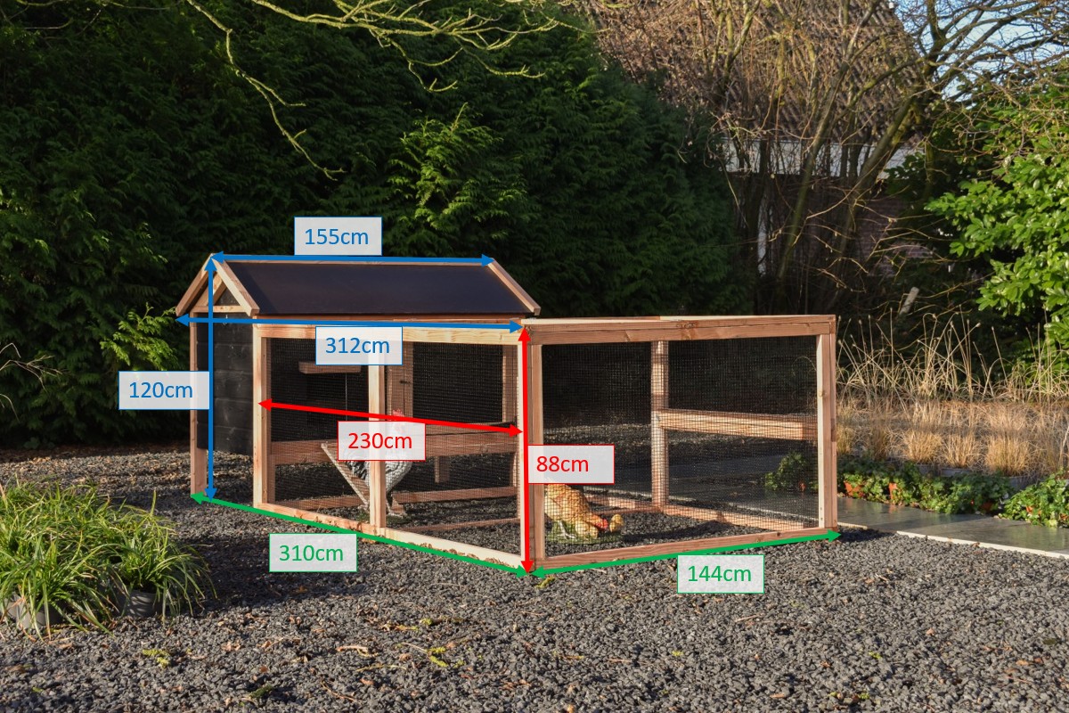 Ten niski model jest łatwy do czyszczenia dzięki otwieranemu dachowi i wygodnym drzwiczkom z przodu. Uroczy detal z kogutem na drzwiach nadaje kurnikowi dodatkowego uroku! Połączenie drewna daglezji i czerni nadaje klatce elegancki wygląd.