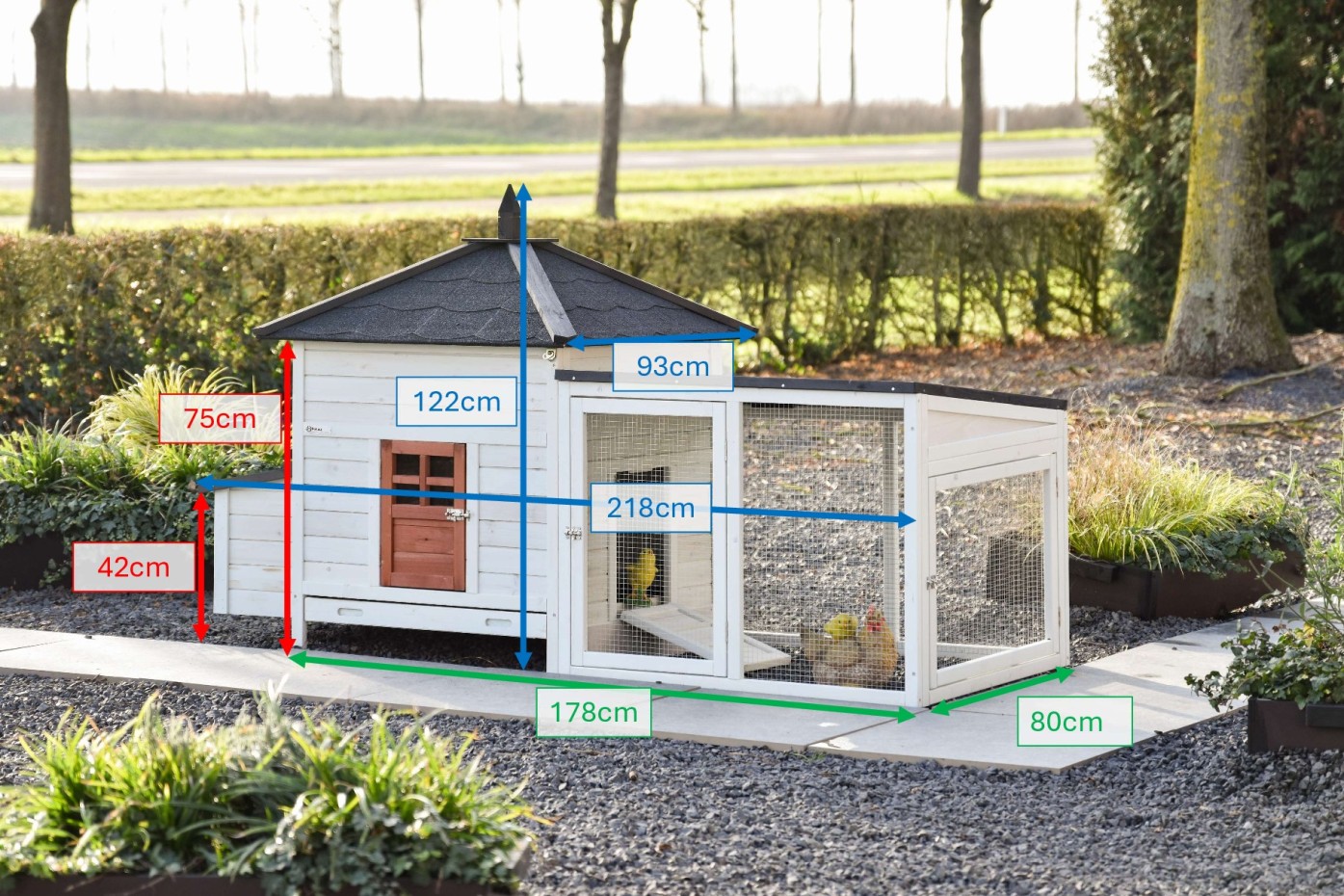 Ten wspaniały kurczynek Ambiance Large jest doskonale wykończony w najmniejszych detalach! Posiada wygodny, wysuwany pojemnik na odchody i zdejmowany dach. Kurczynek Ambiance Large zachwyca pięknymi i praktycznymi detalami, a także przydatnym wybiegiem, który można bez końca rozszerzać. Ten moduł można dostosować do większości ogrodów. Kurczynkowiec nocny nadaje się maksymalnie dla 4-6 kur, w zależności od wielkości rasy.