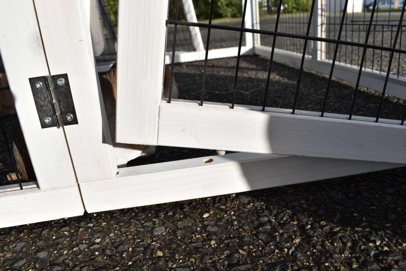 Wybieg dla królików Multirun, kolor biały. Wybieg dla królików Multirun jest wyposażony w aluminiowe listwy na większości krawędzi, aby zapobiec gryzieniu. Wybieg dla królików jest praktyczny i składany, można go łatwo zamontować przy różnych klatkach dla królików. Wybieg dla królików Multirun można także ustawiać oddzielnie od klatki dla królików. Ten praktyczny wybieg ma drzwi w siatce na 3 stronach i wymienne panele na 2 stronach. Pozwala to na dowolne łączenie wielu wybiegów w razie potrzeby. Górna część wybiegu dla królików jest również łatwa w składaniu i demontażu. Wybieg wielofunkcyjny więc!