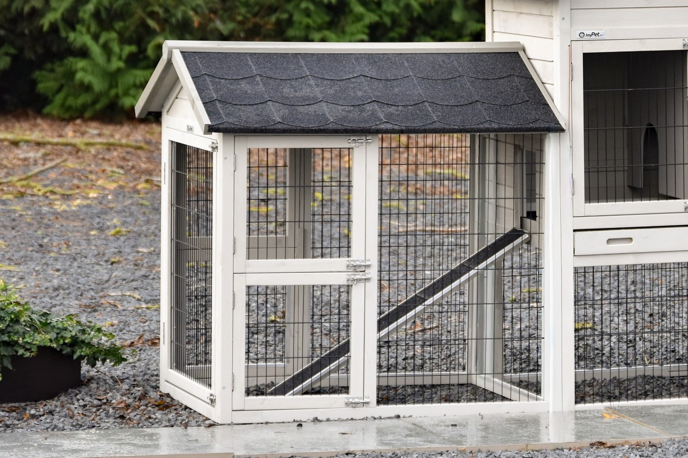 - Jeśli to możliwe, umieść domek dla zwierząt w osłoniętym miejscu