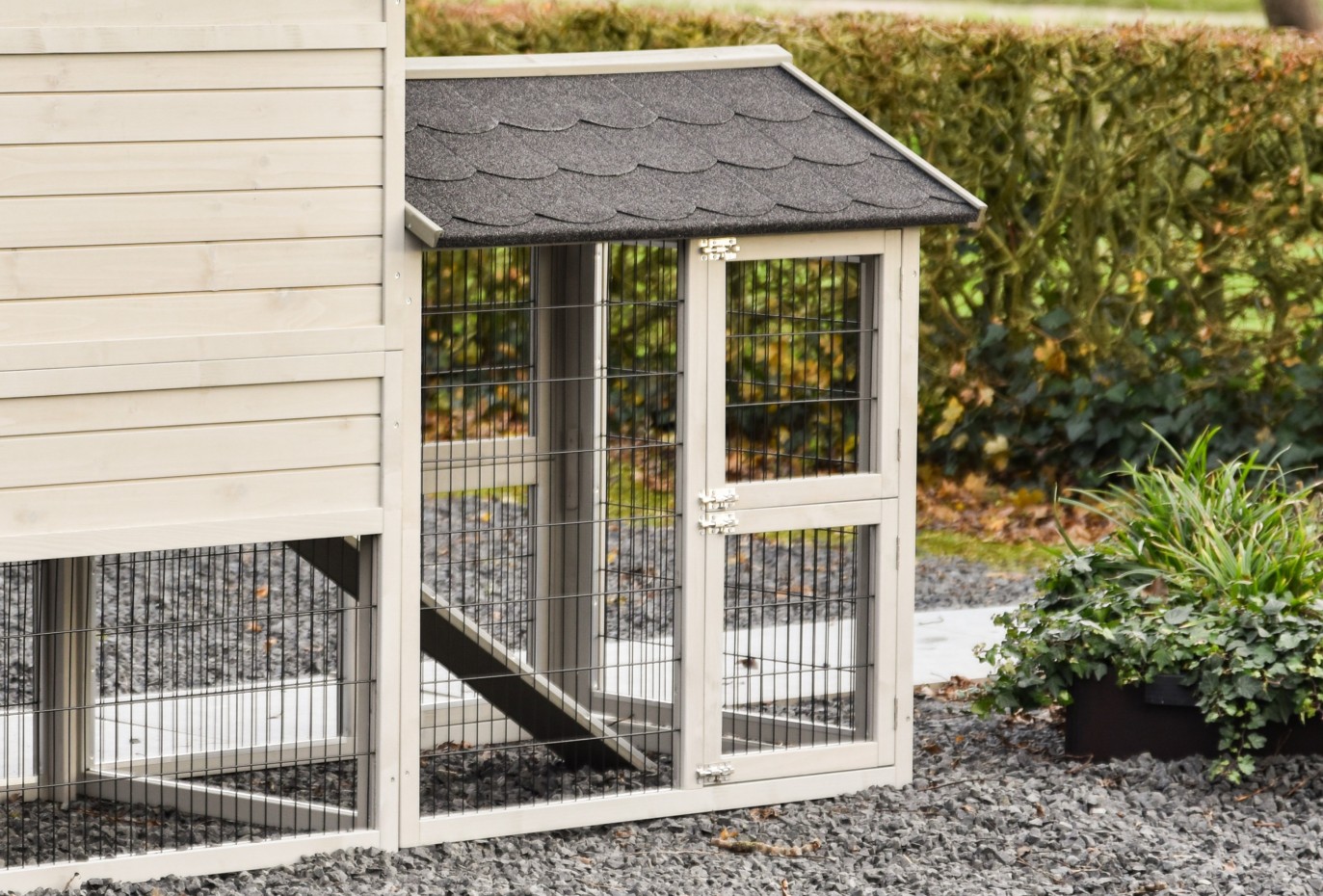 Przedłużenie klatki Space Medium można umieścić zarówno po lewej, jak i po prawej stronie. Przedłużenie klatki - klatka dla królików - klatka dla kur - klatka dla kotów do rozbudowy średniego pomieszczenia dla zwierząt lub połączenia z innym pomieszczeniem dla zwierząt. To przedłużenie klatki jest wyposażone w krawędzie przeciwdrgające gryzieniu i gumowe nóżki oraz dodatkowo przestronne drzwi. Sprawdź wcześniej, czy to przedłużenie jest kompatybilne z Twoim istniejącym pomieszczeniem dla zwierząt.