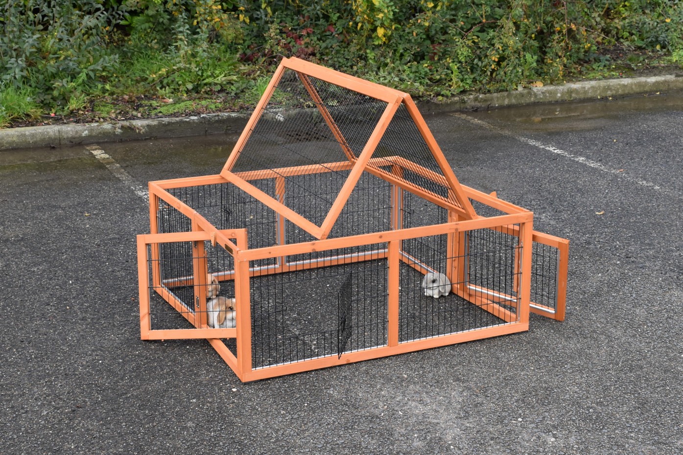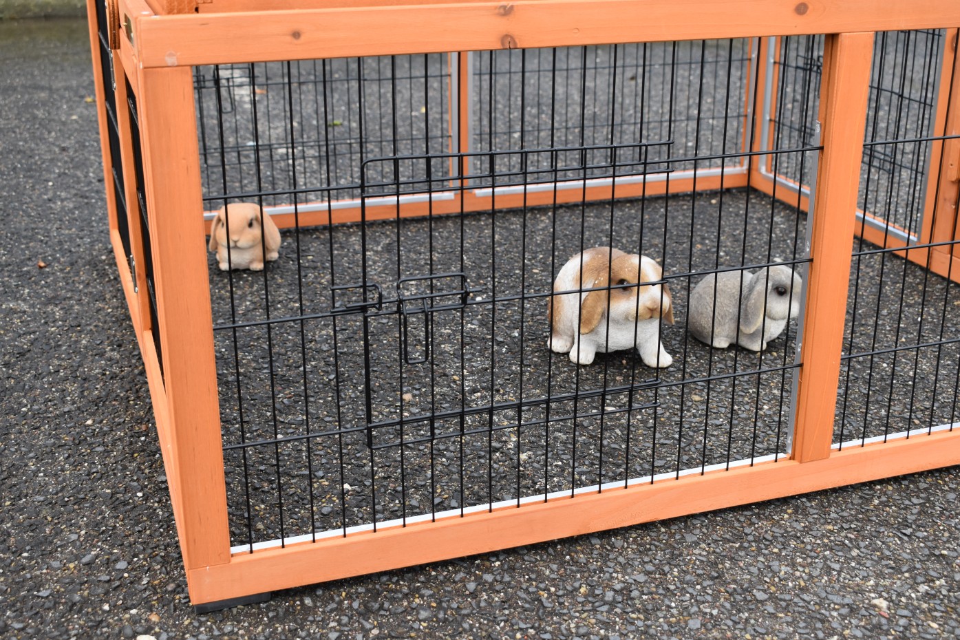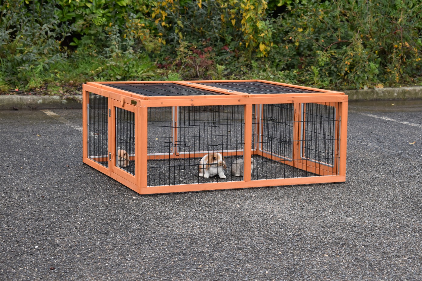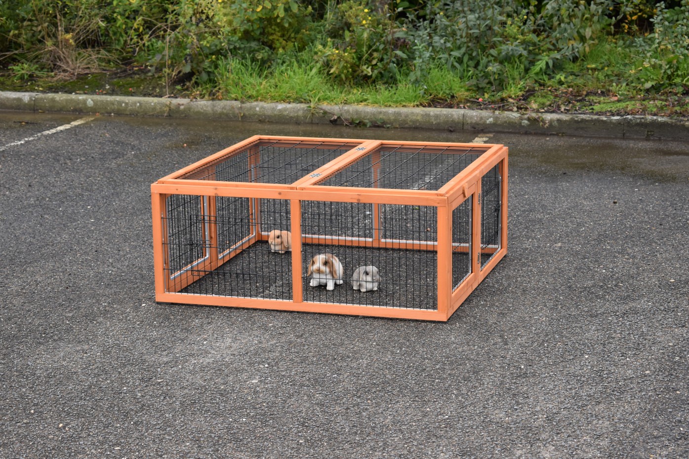 Woliera dla królików Multirun jest wyposażona w aluminium na większości krawędzi w woliery, aby zapobiec gryzieniu. Wolaiera dla królików jest w pełni składana i łatwo można ją podłączyć do różnych klatek dla królików. Może także być ustawiona oddzielnie od klatki dla królików. Ta praktyczna wolaiera ma 3 drzwi w kratce po 3 stronach i 2 strony mają demontowalne panele. Pozwala to na łączenie kilku woliery. Górna część woliery dla królików jest również łatwo składana i demontowalna. Wolaiera wielofunkcyjna!