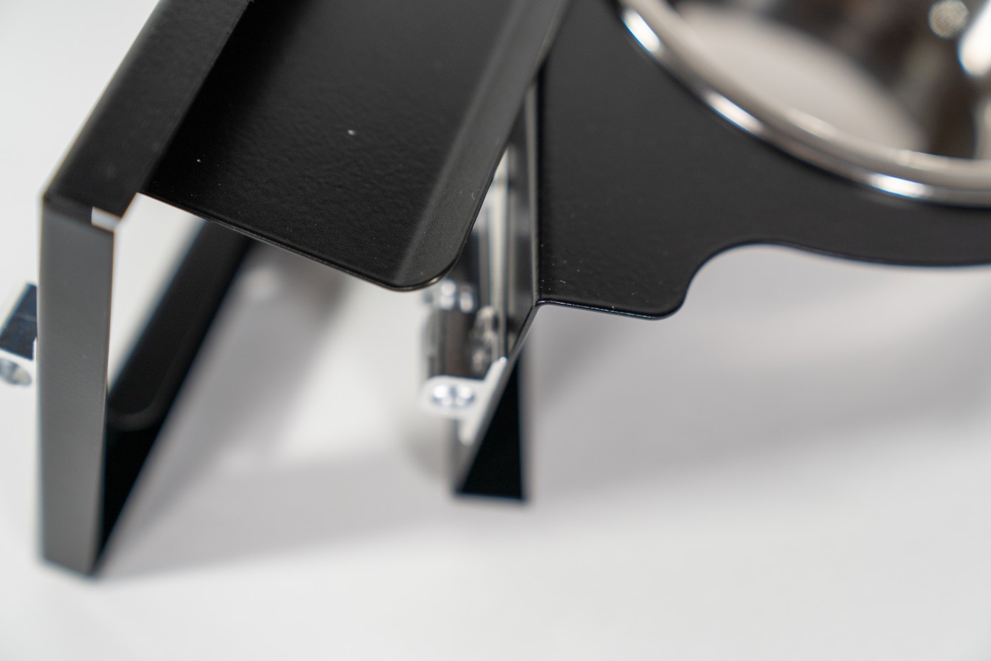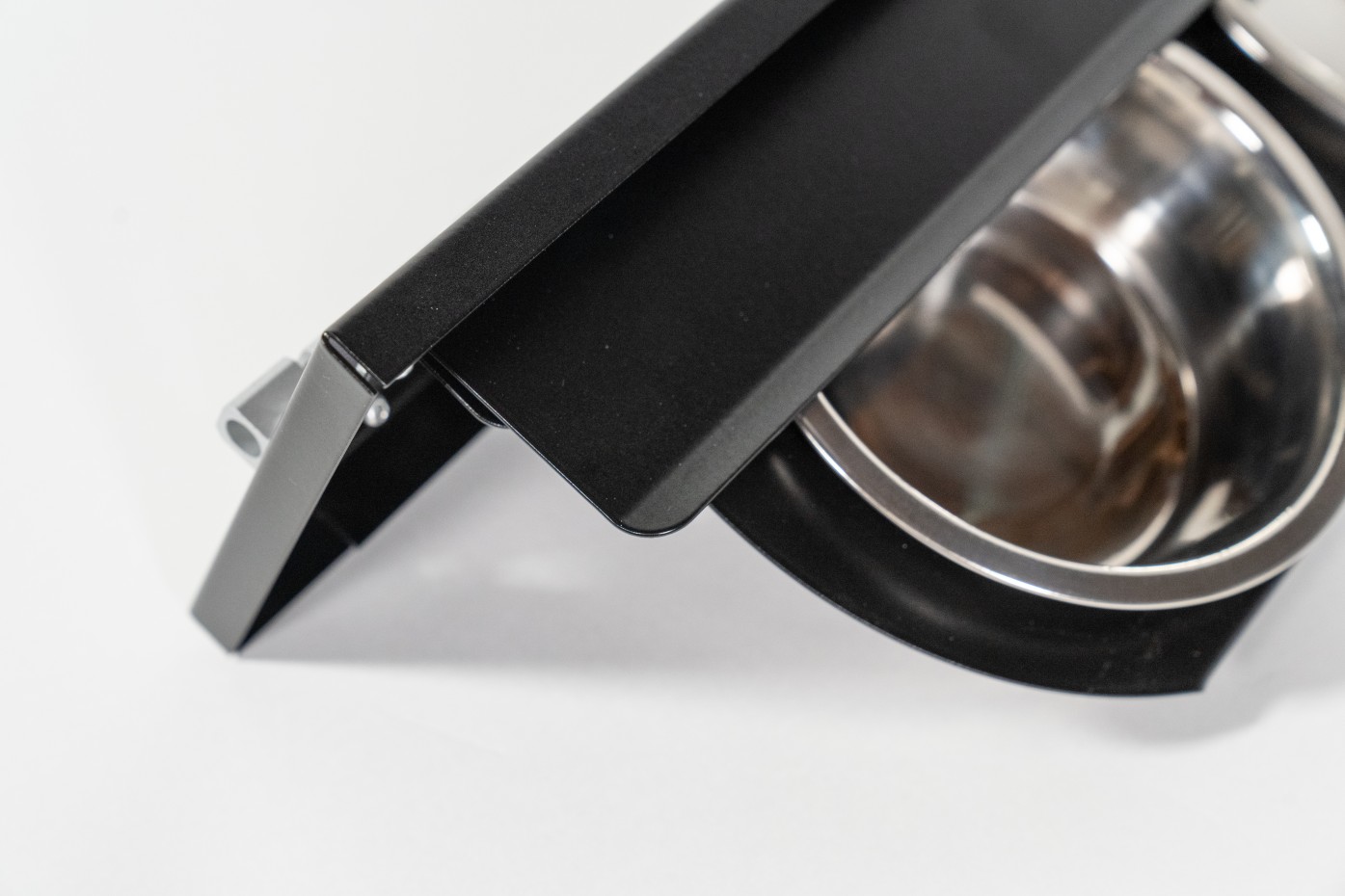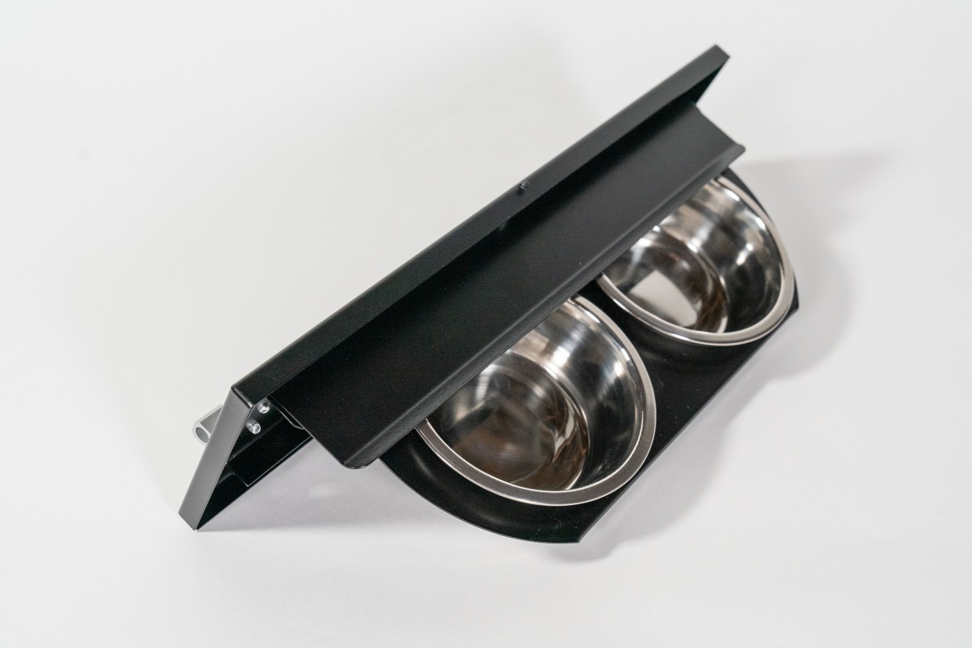 Obrotowa taca na karmę dla woliery. Ta wytrzymała, obrotowa platforma do karmienia jest łatwa do zainstalowania w wolierze. Platforma podająca jest galwanizowana, a następnie malowana proszkowo na czarno. Na platformie do karmienia znajdują się 2 miski ze stali nierdzewnej. Średnica miski wynosi 13 cm.
