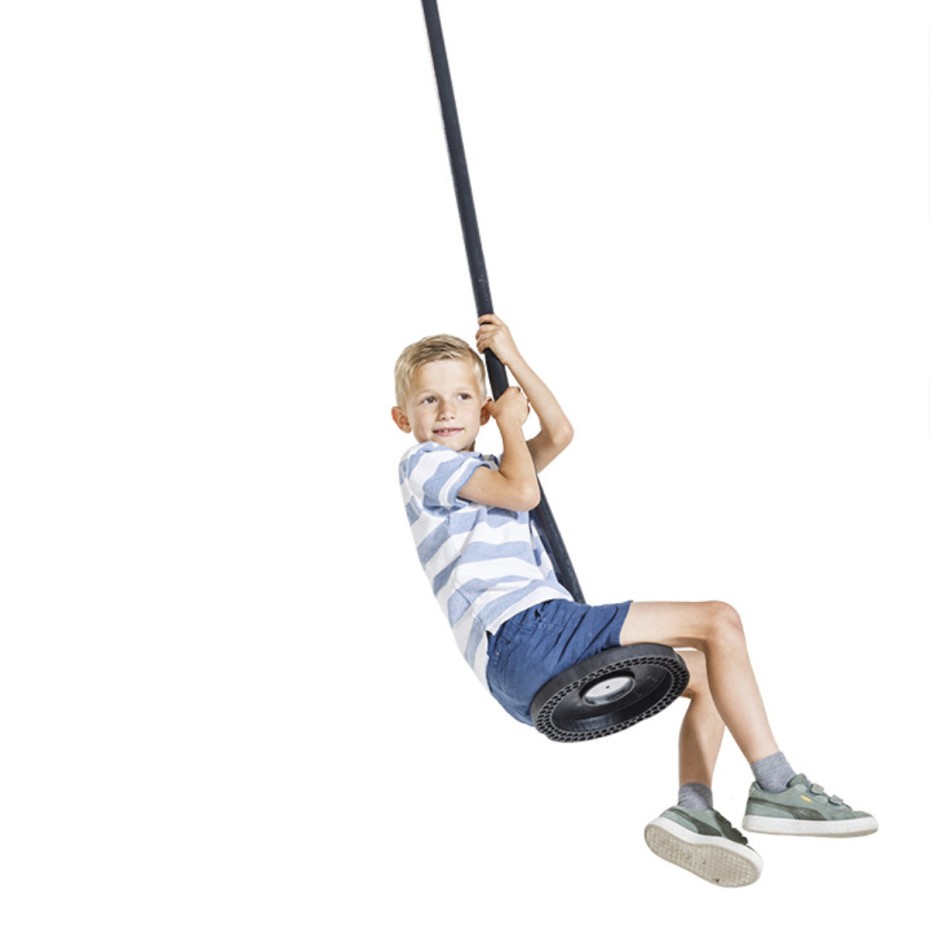 Gumowa huśtawka talerzowa „Curve” może być używana samodzielnie lub w połączeniu z wózkiem jezdnym. Siedzisko z formowanego wtryskowo TPE posiada metalową płytę wzmacniającą o grubości 3 mm. W zestawie znajduje się łańcuch 6 mm z gorąco ocynkowanej stali, z gumową osłoną i zapięciem typu D. Huśtawka i łańcuch są dostępne oddzielnie.